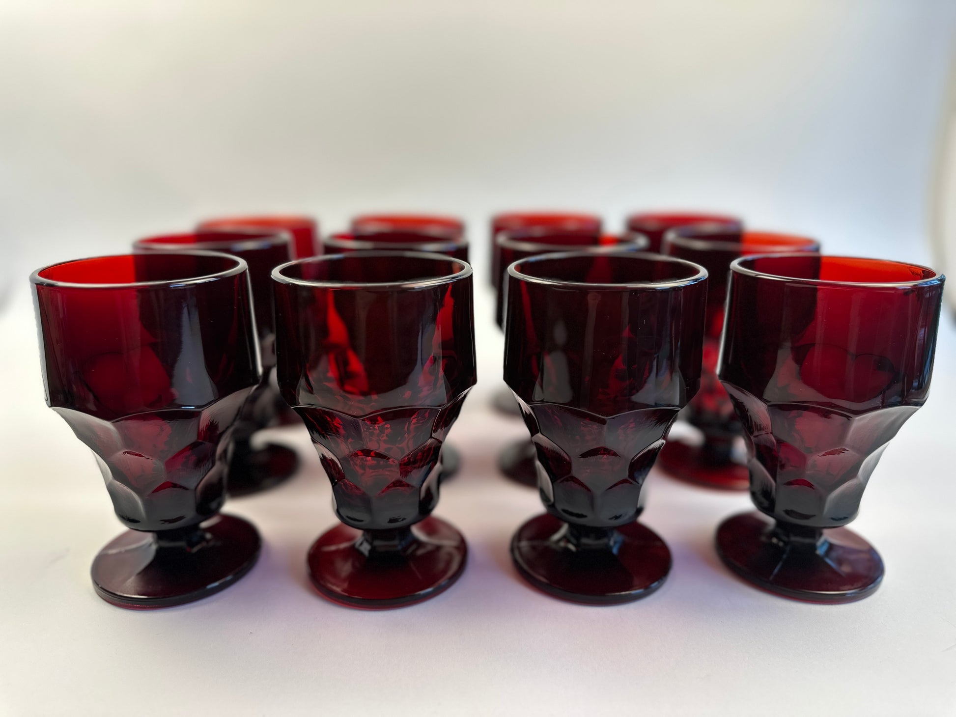Anchor Hocking Georgian Red Footed Glasses Set of Twelve