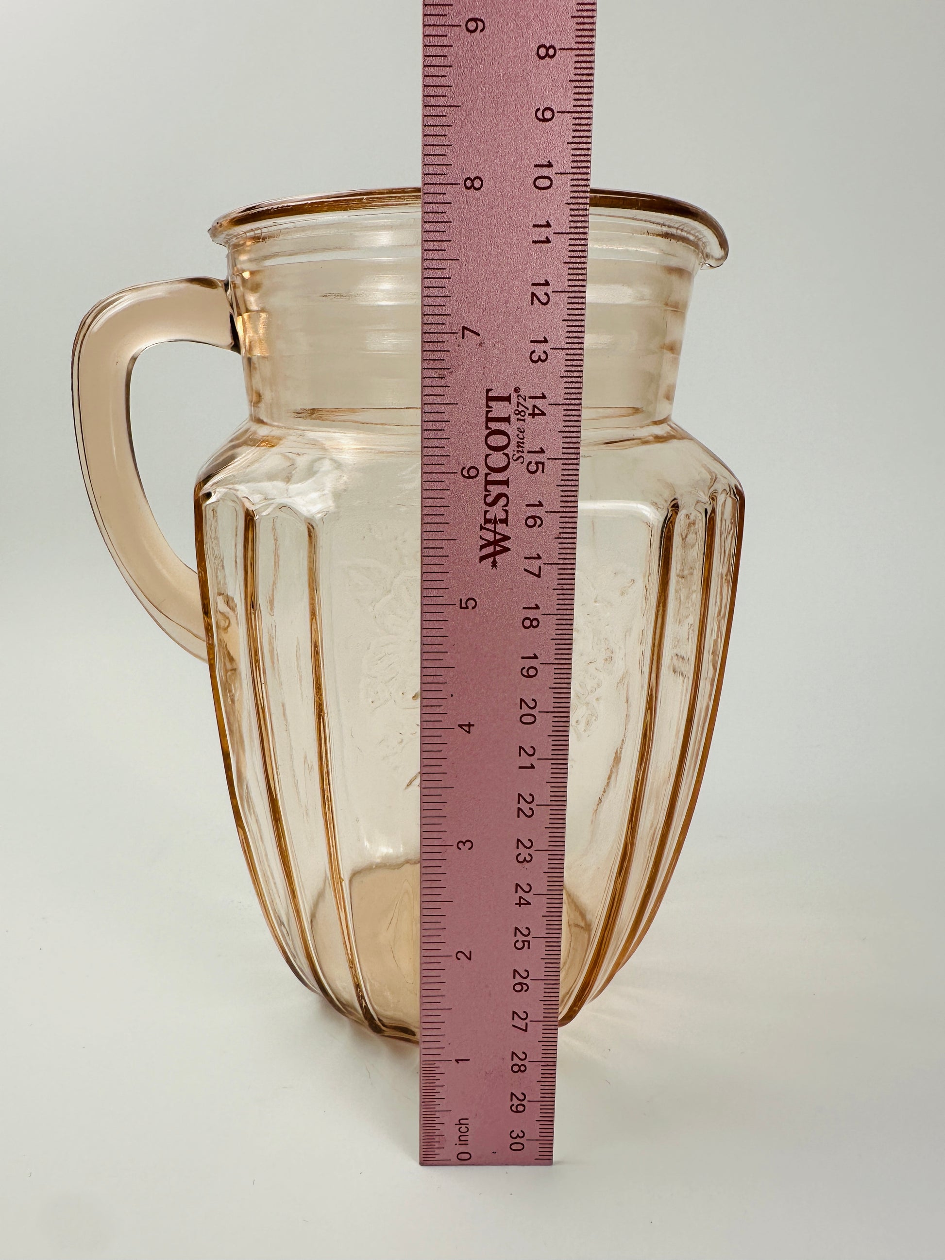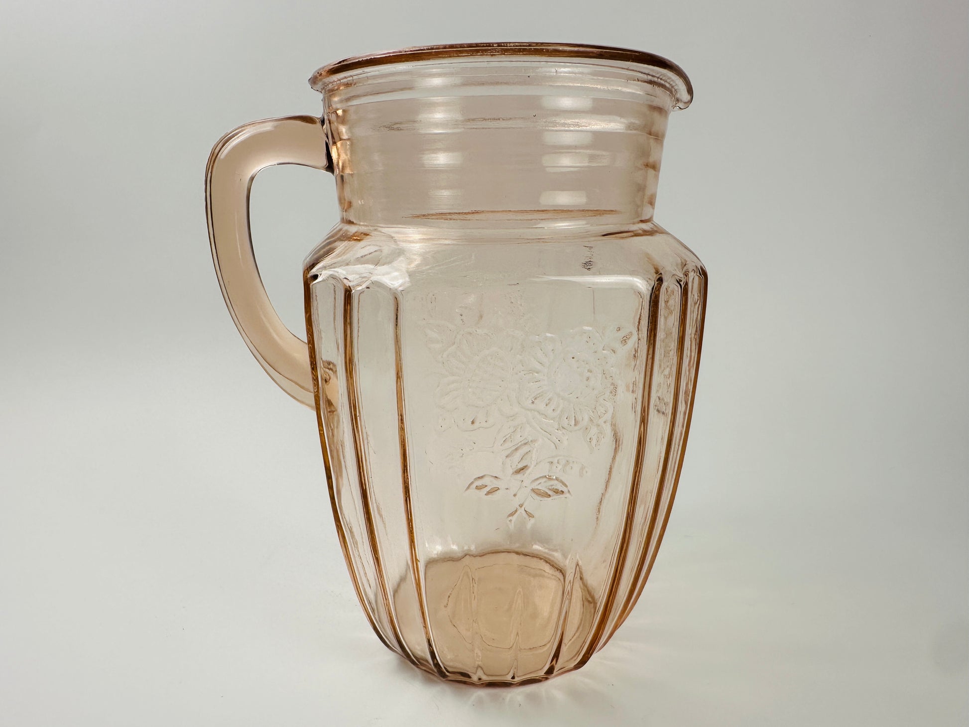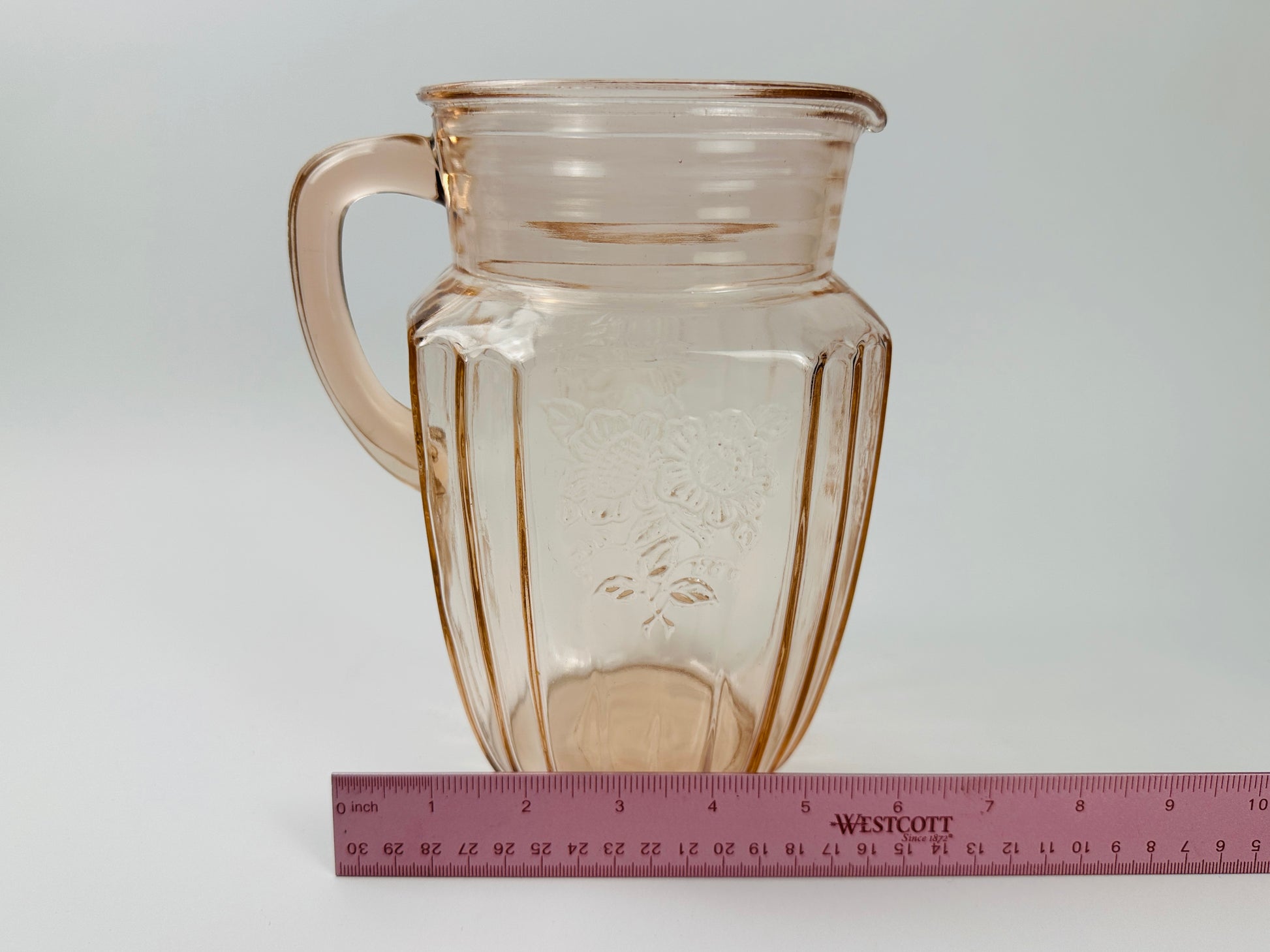 Anchor Hocking Pink Floral Mayfair Pressed Glass Pitcher