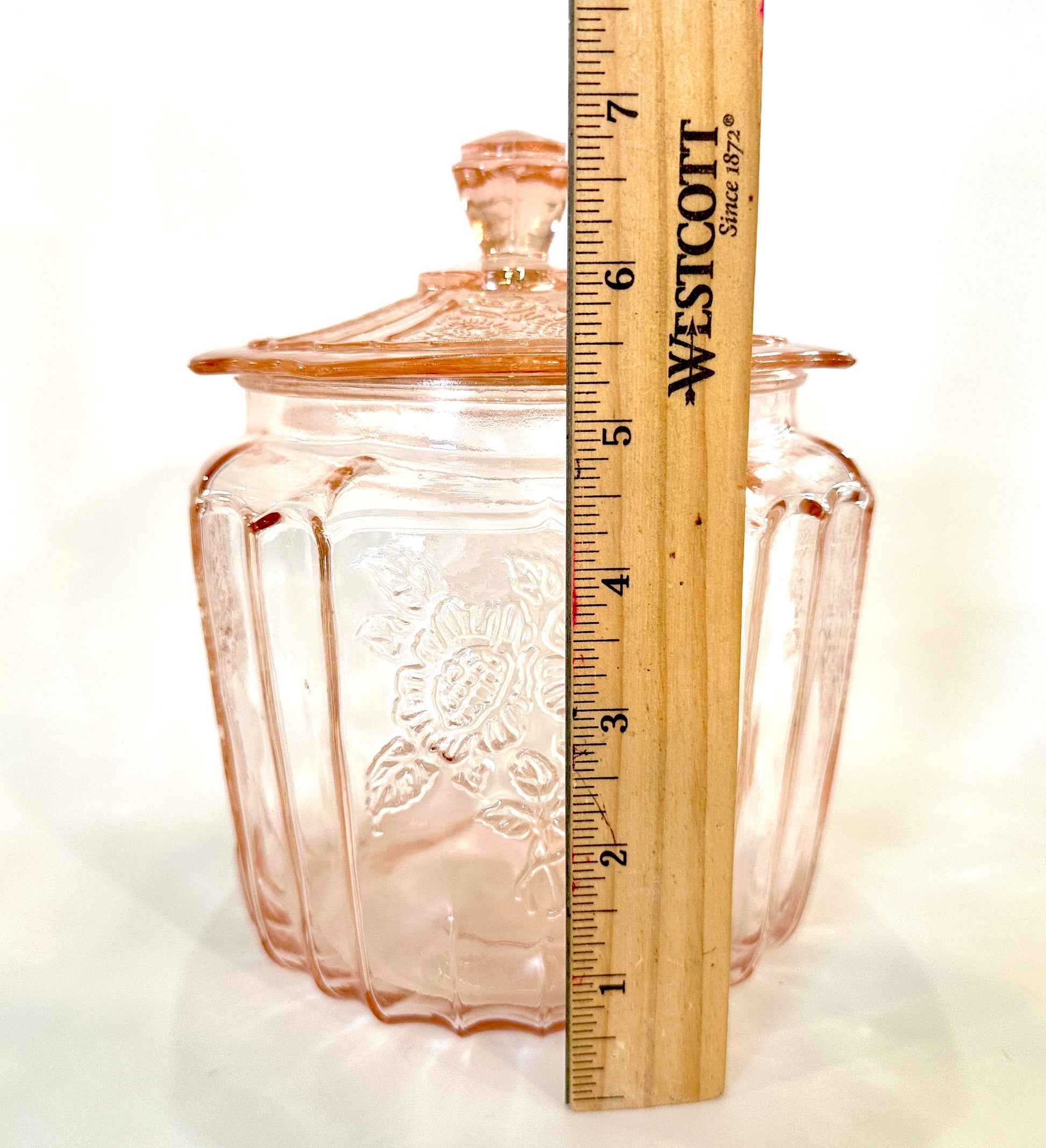 The classic AH Mayfair Open Rose pattern pink embossed glass cookie/biscuit jar with lid. All BHDLV product offerings are previously owned. Condition is good condition consistent with previous use unless otherwise stated. Every BHDLV website sale generates a donation to a local nonprofit animal rescue organization - thank you!