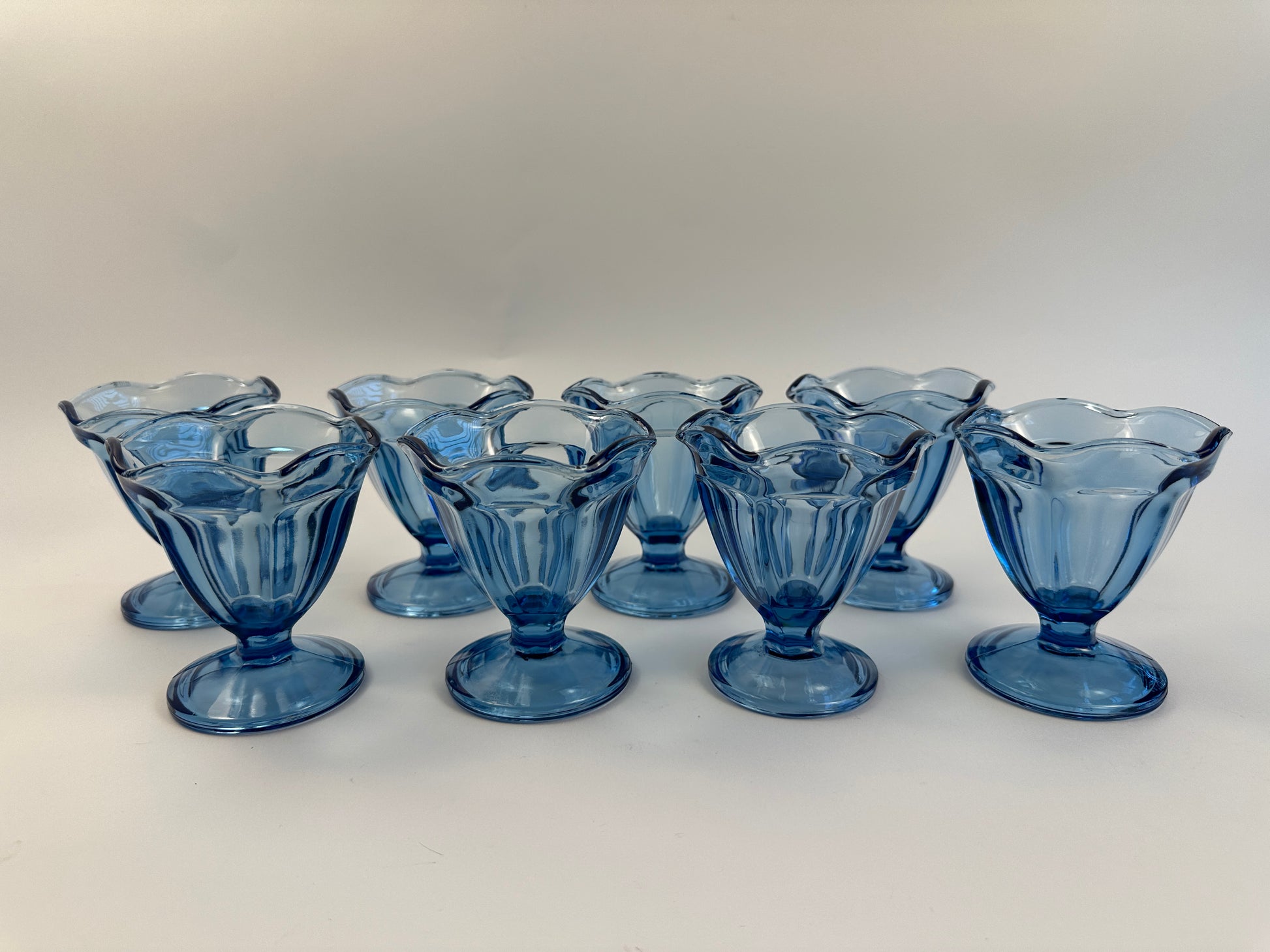 Set of eight blue low parfait/fruit/dessert glasses. Glasses sold as set only.