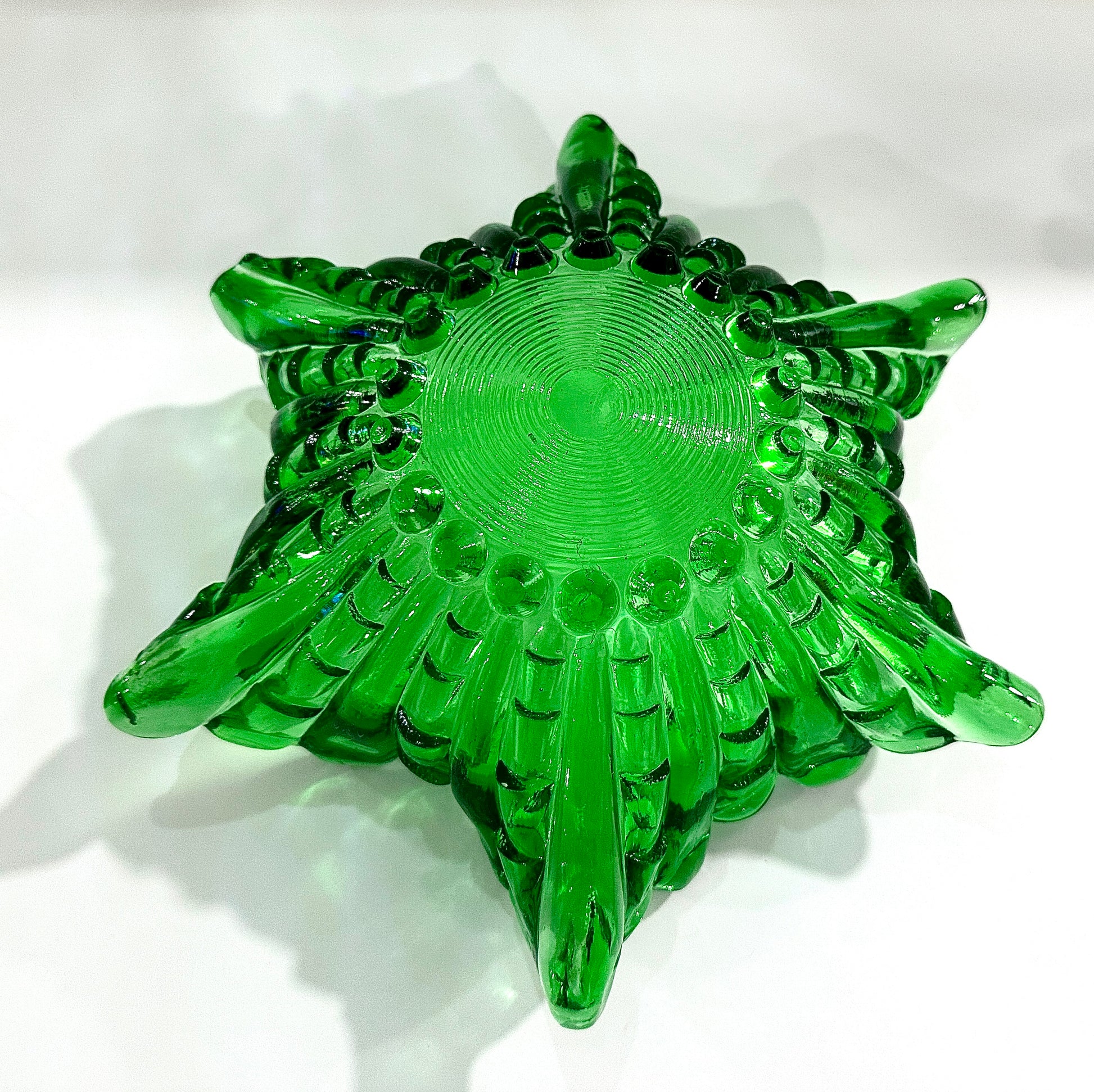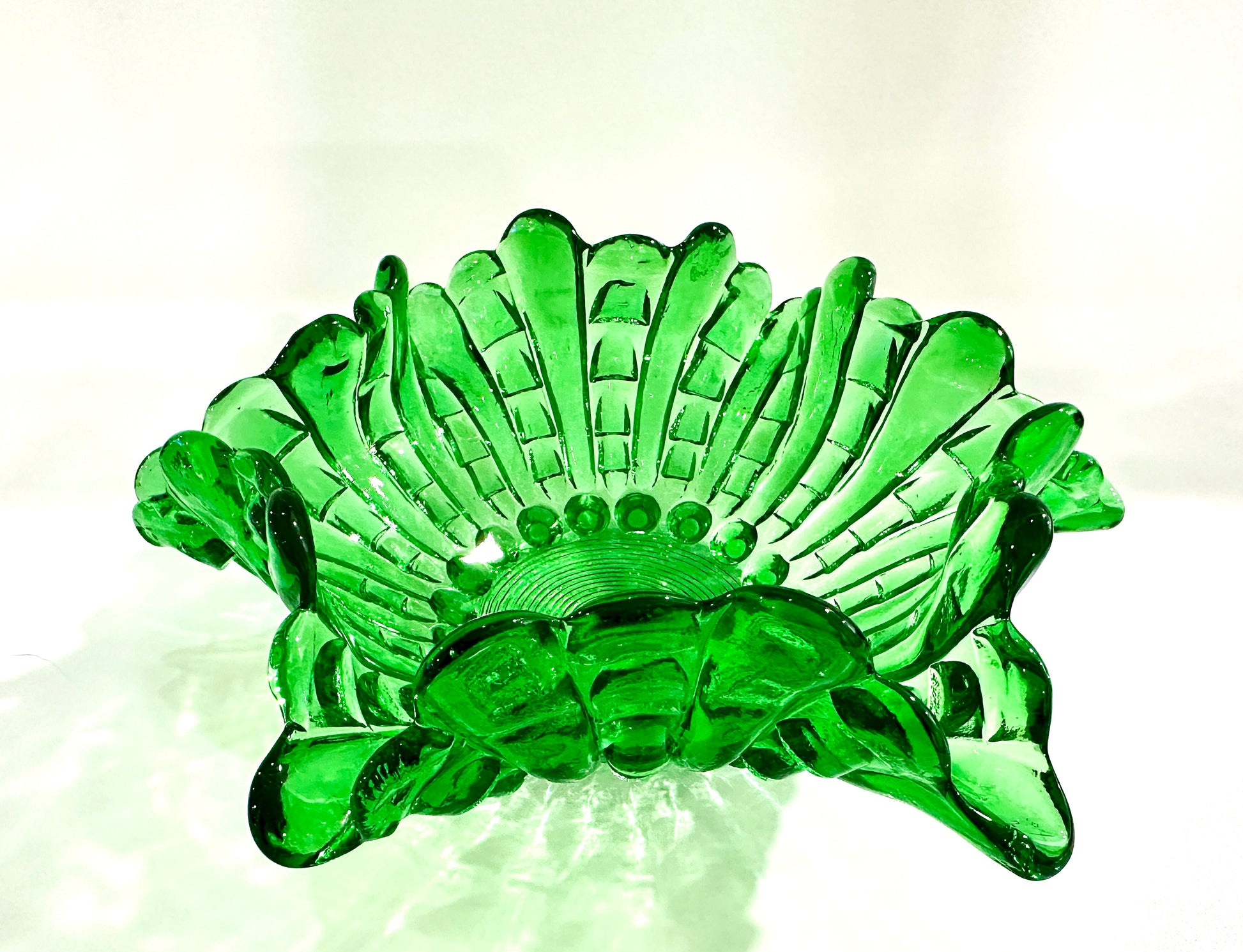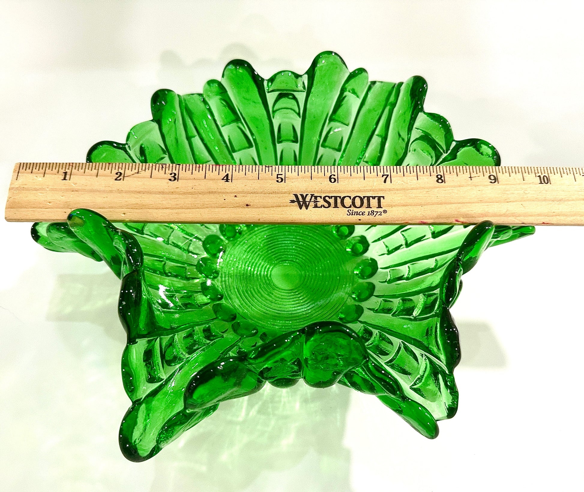 This vintage glass bowl in emerald green is both art and function in one with brilliant color and eye catching textures. All BHDLV product offerings are previously owned. Condition is good condition unless otherwise stated. All BHDLV website sales generate a donation to a local nonprofit animal rescue organization - thank you!