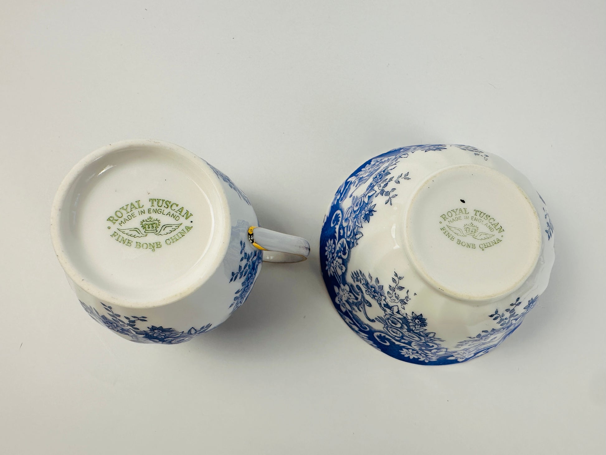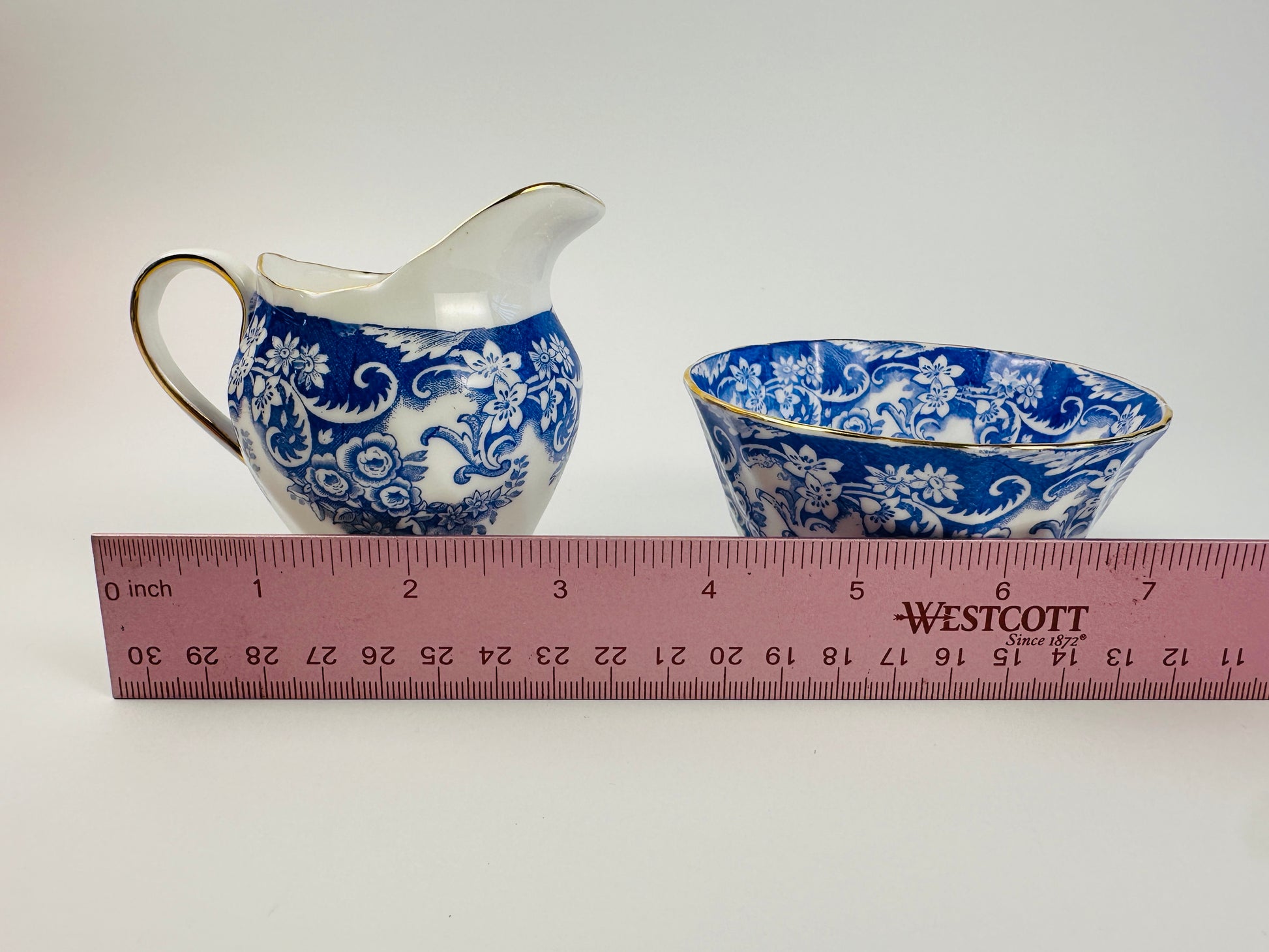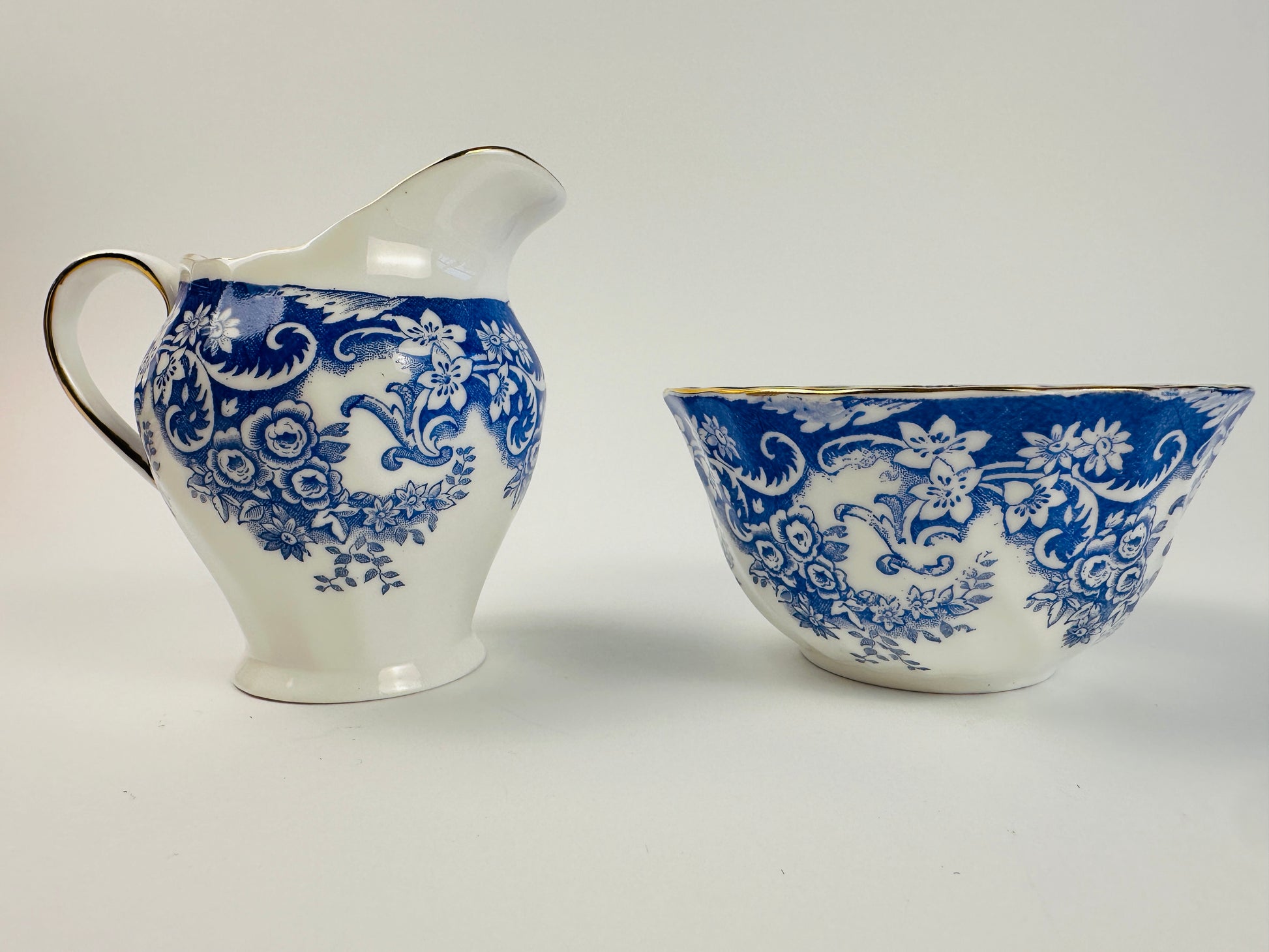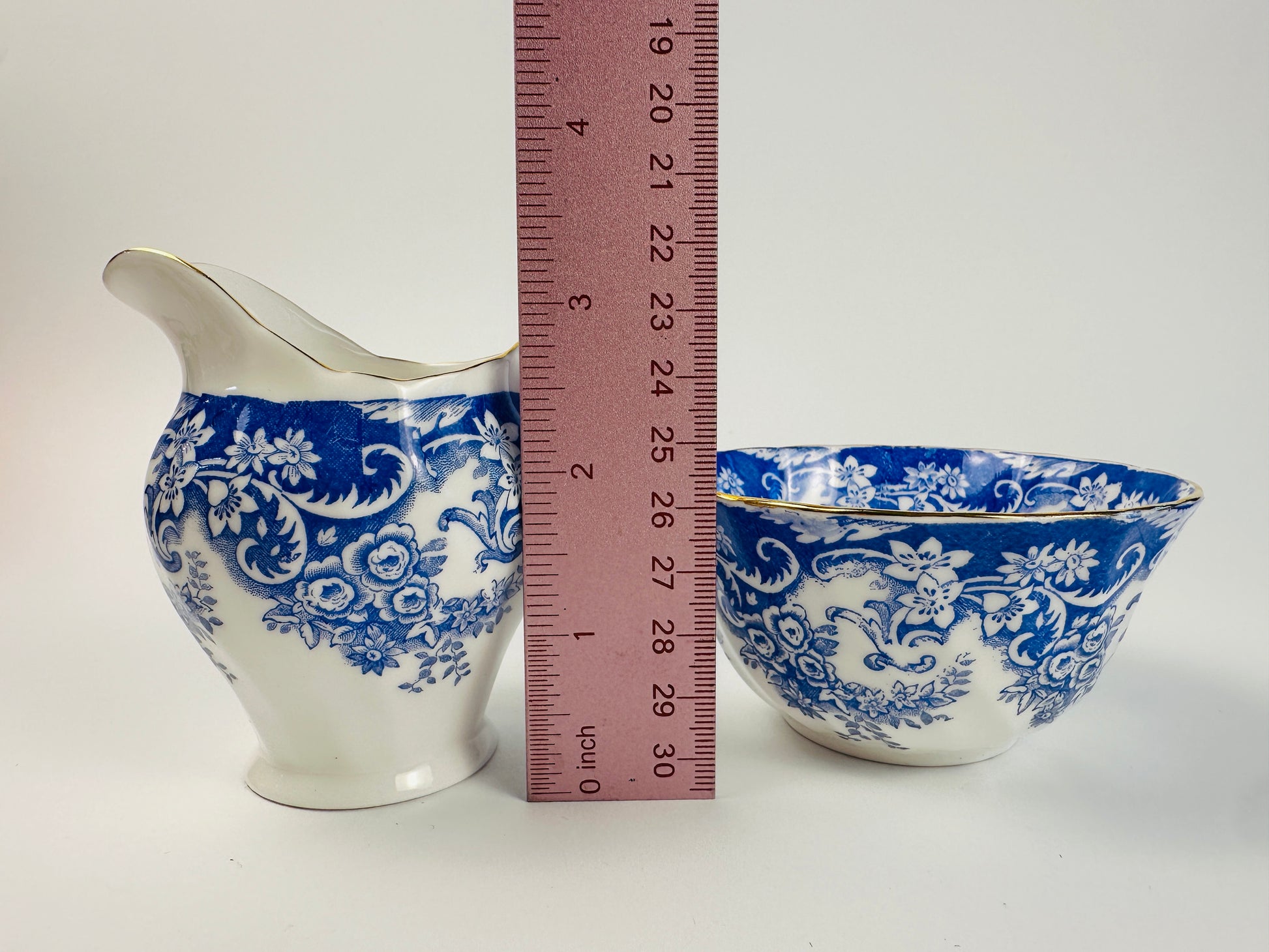 England Blue & White Floral Sugar Bowl & Creamer Set