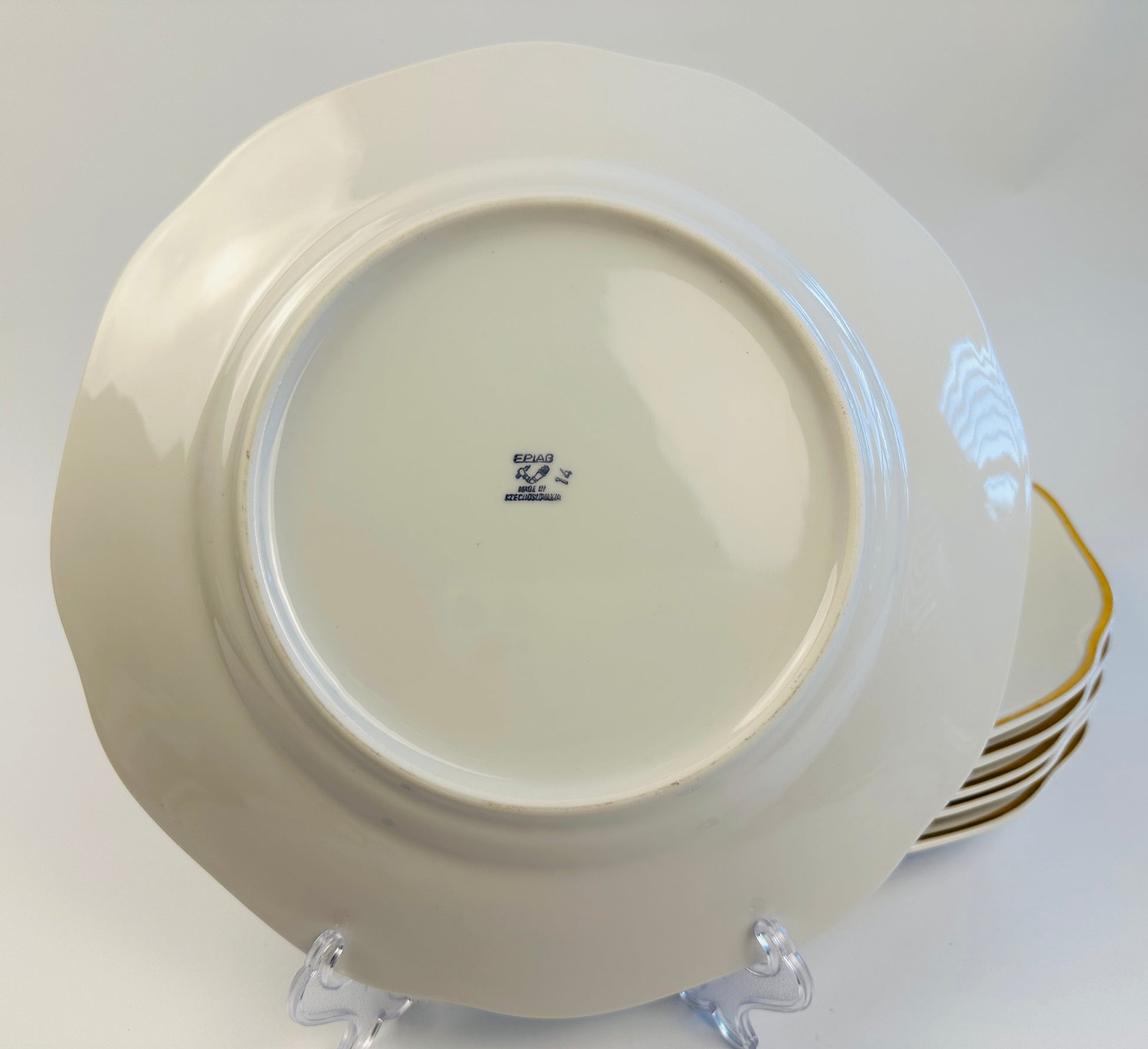 Epiag China Scalloped Gold Rim Dinner Plates Set of Six