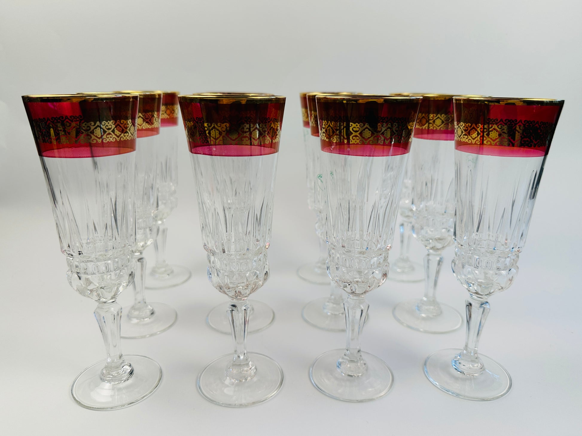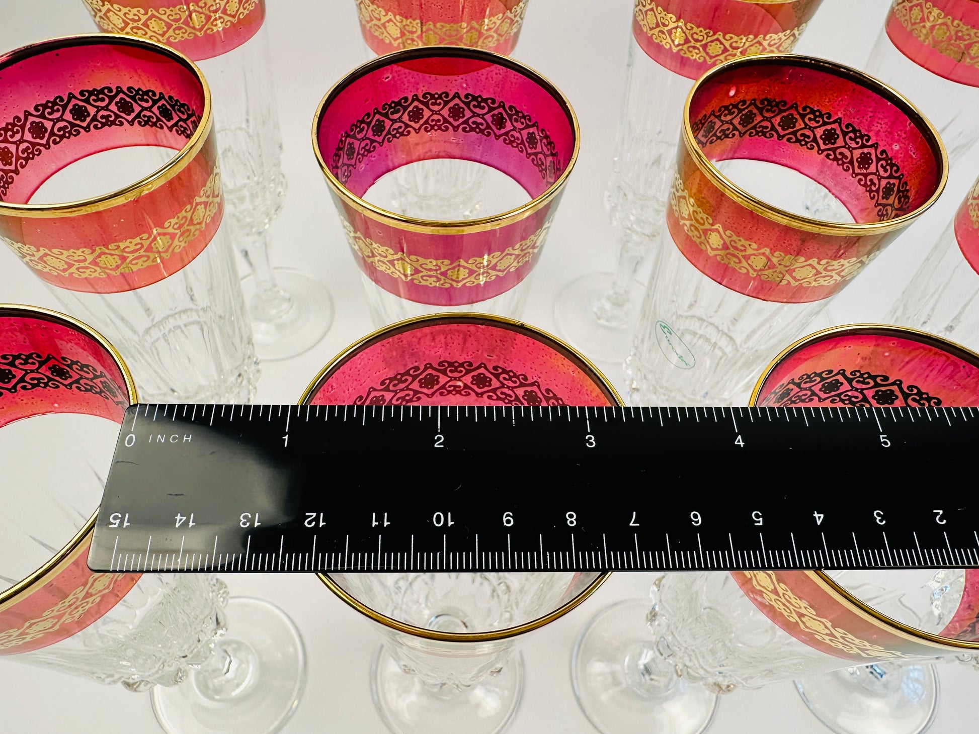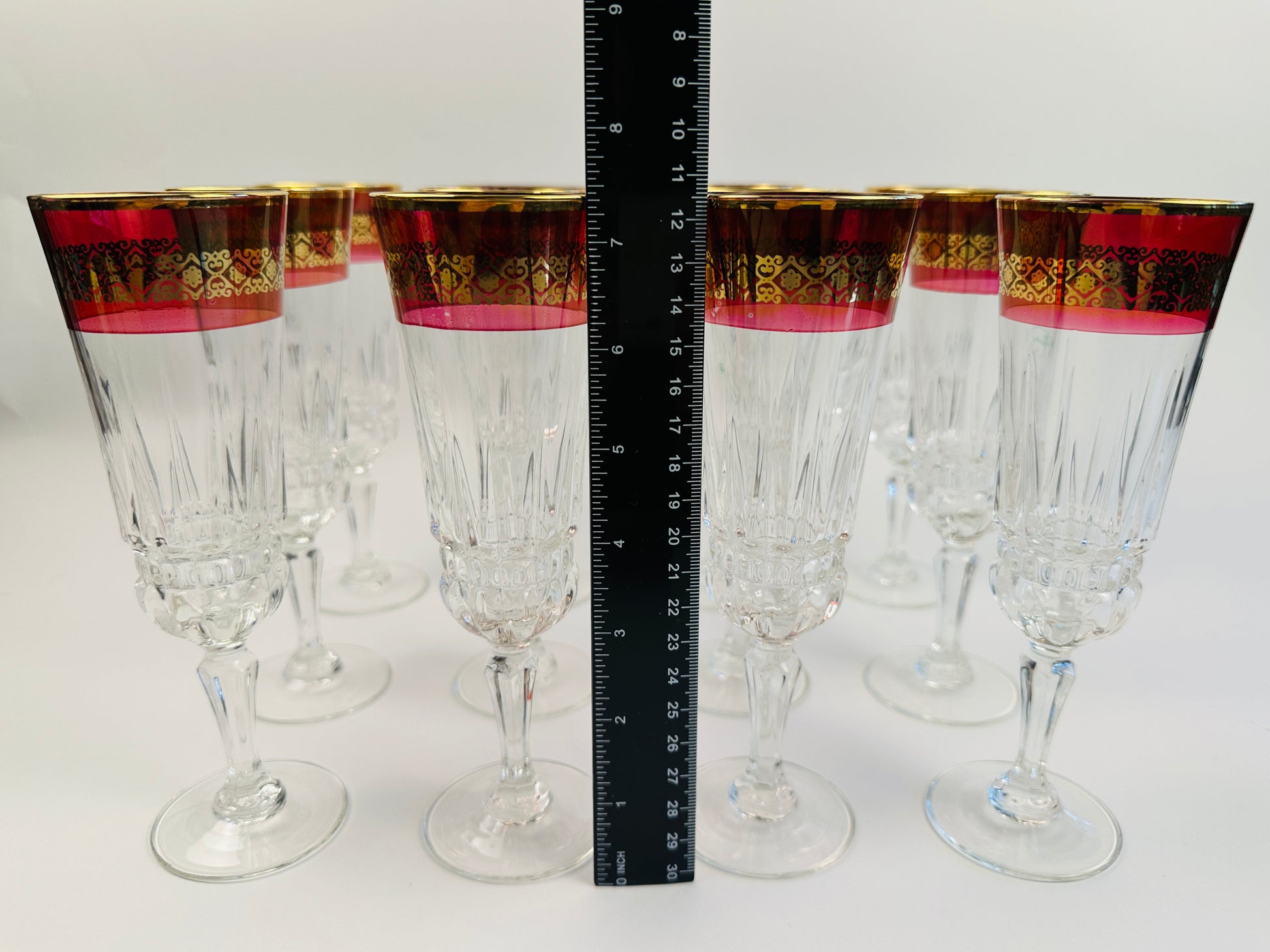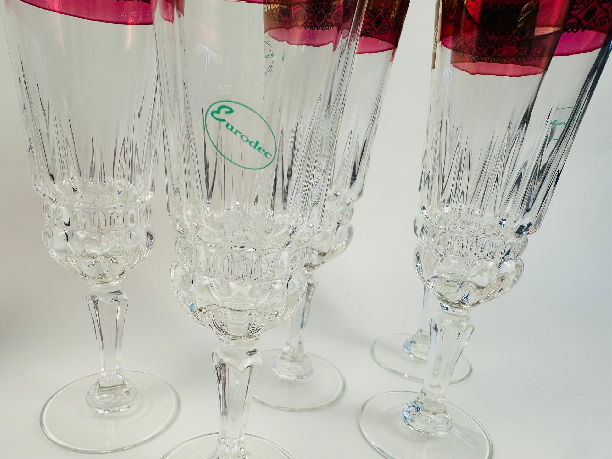 Eurodec Flash Ruby Gold Rim Champagne Flutes Set of Twelve