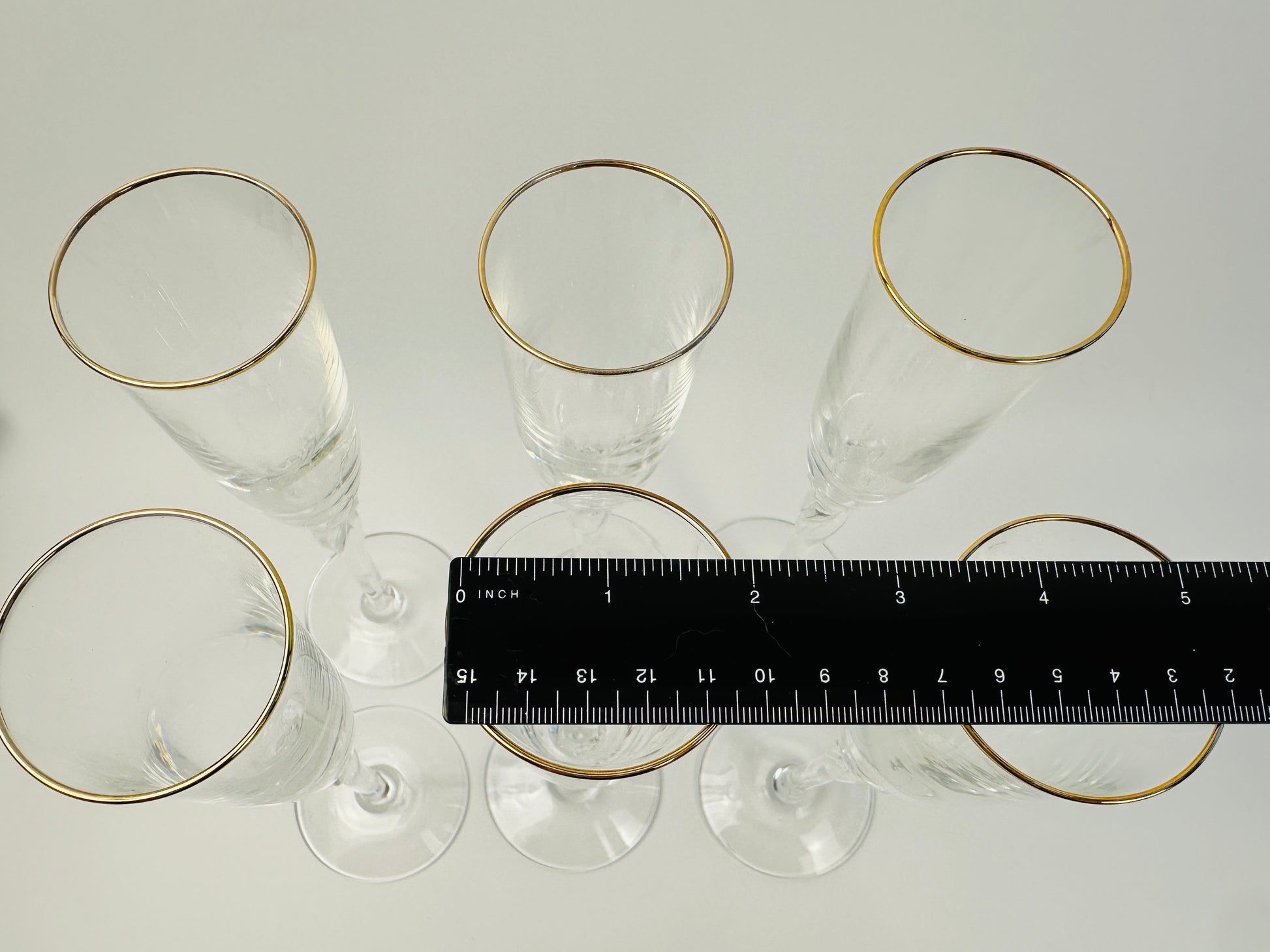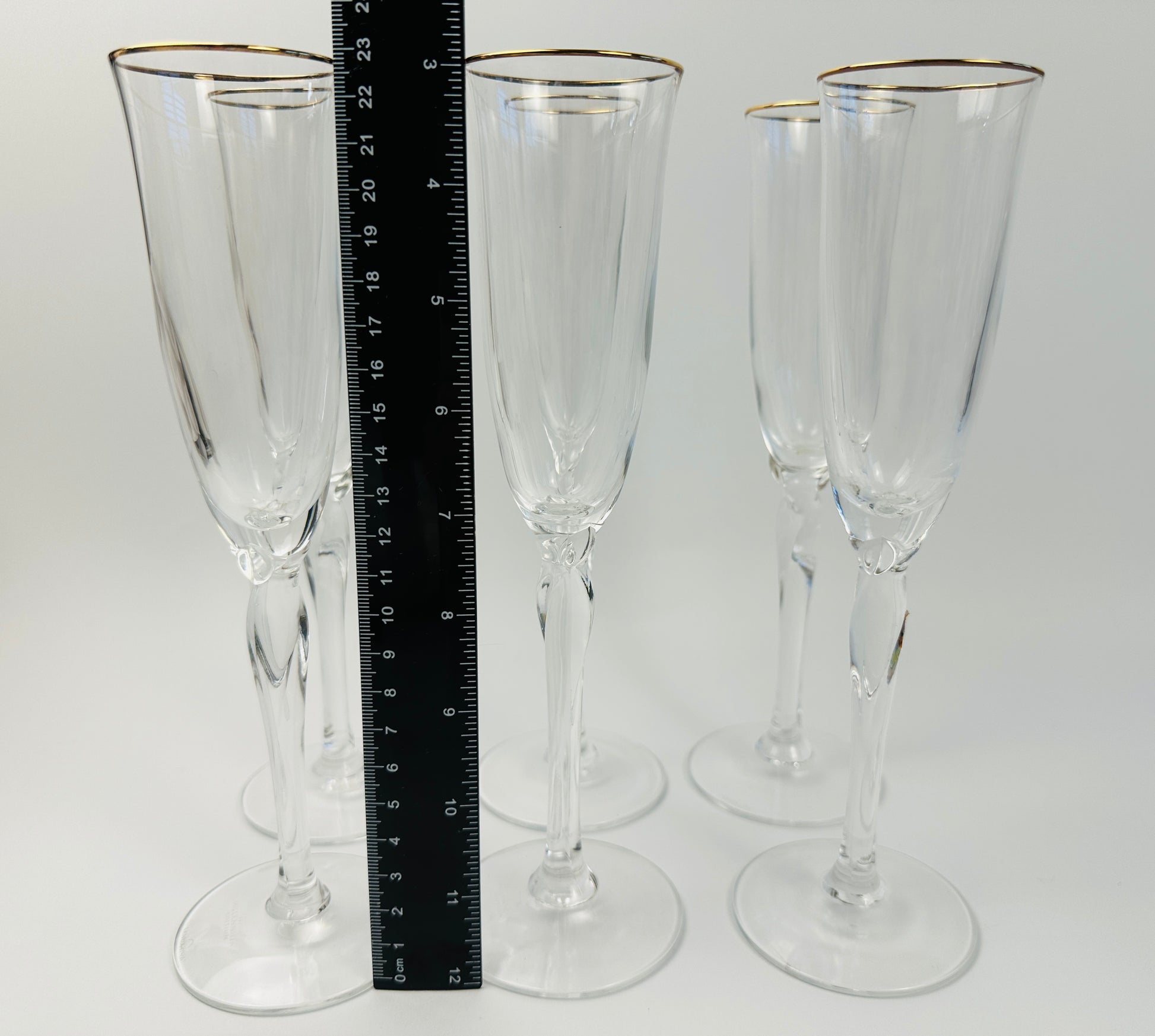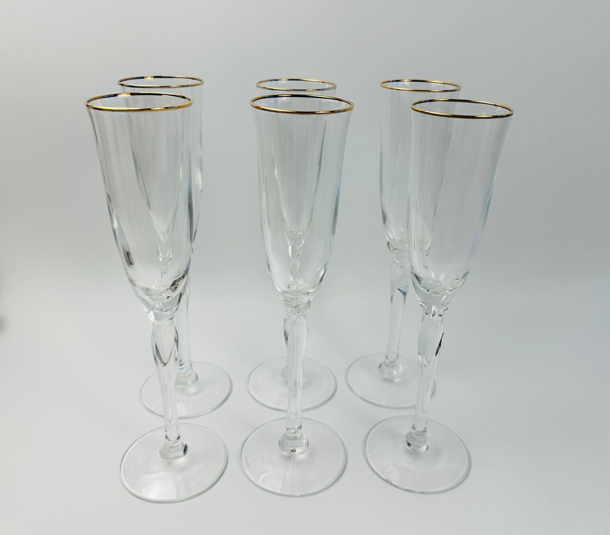 Gold Rim Shaped Stem Champagne Flutes Set of Six