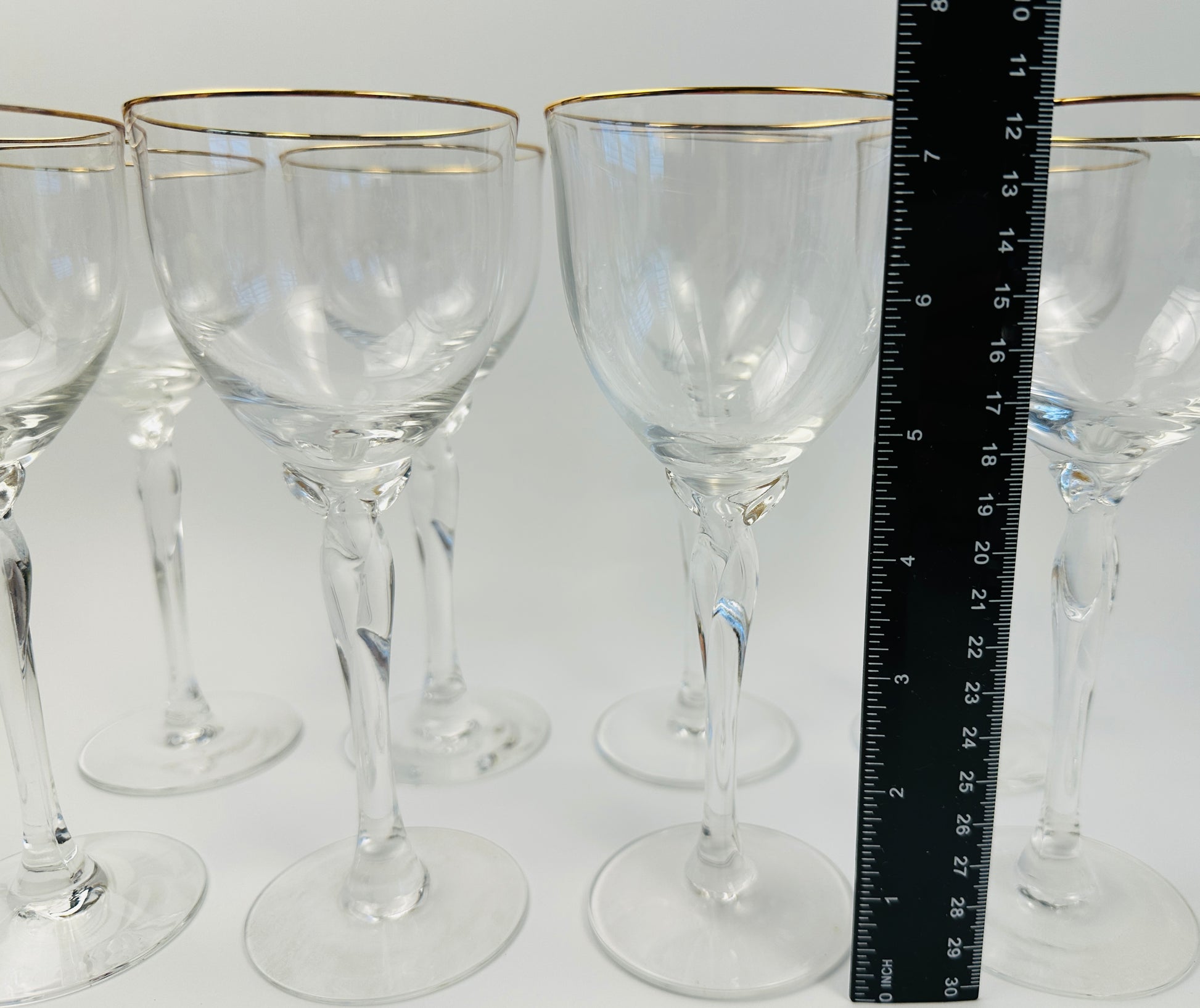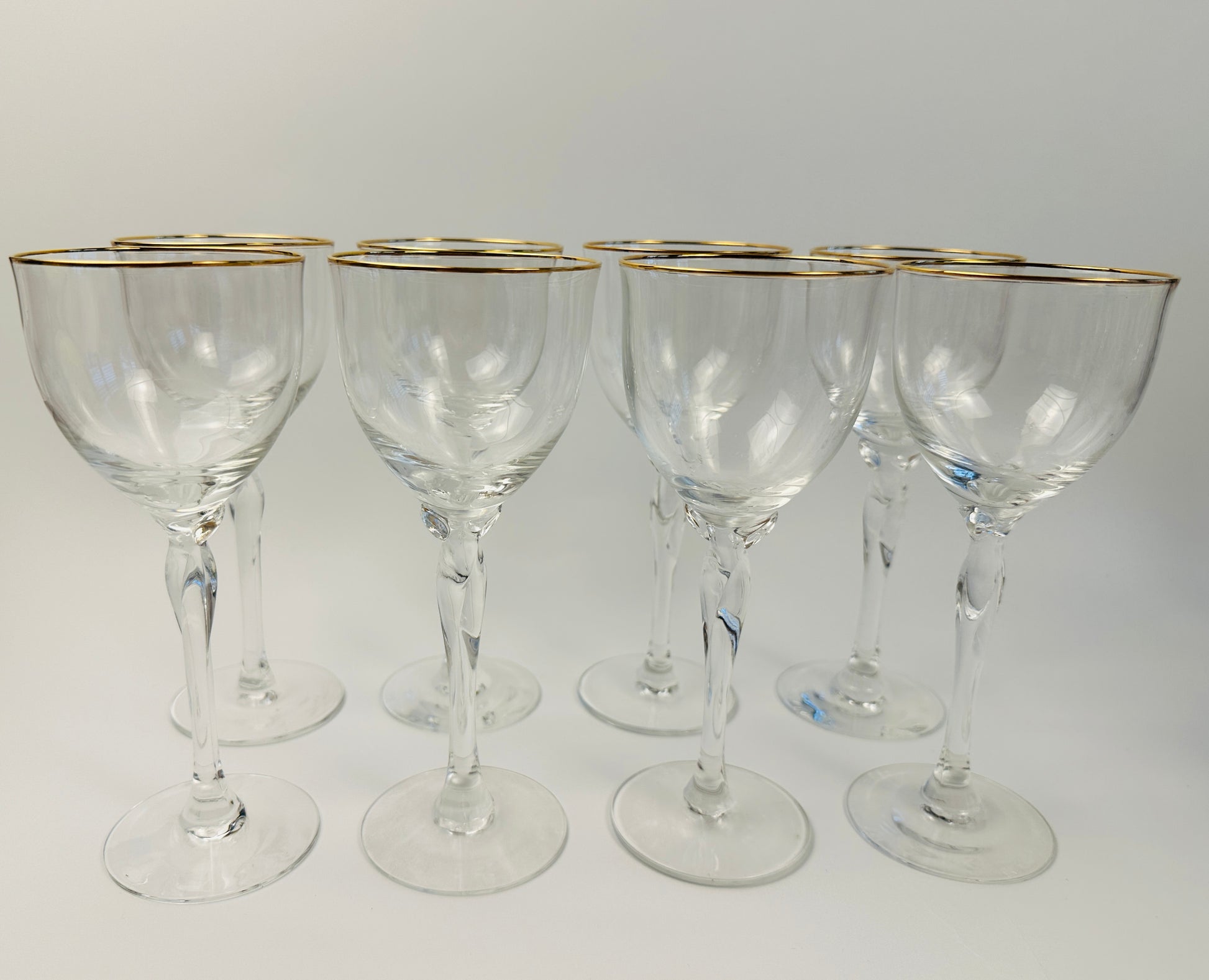Gold Rim Shaped Stem Wine Glasses Set of Eight