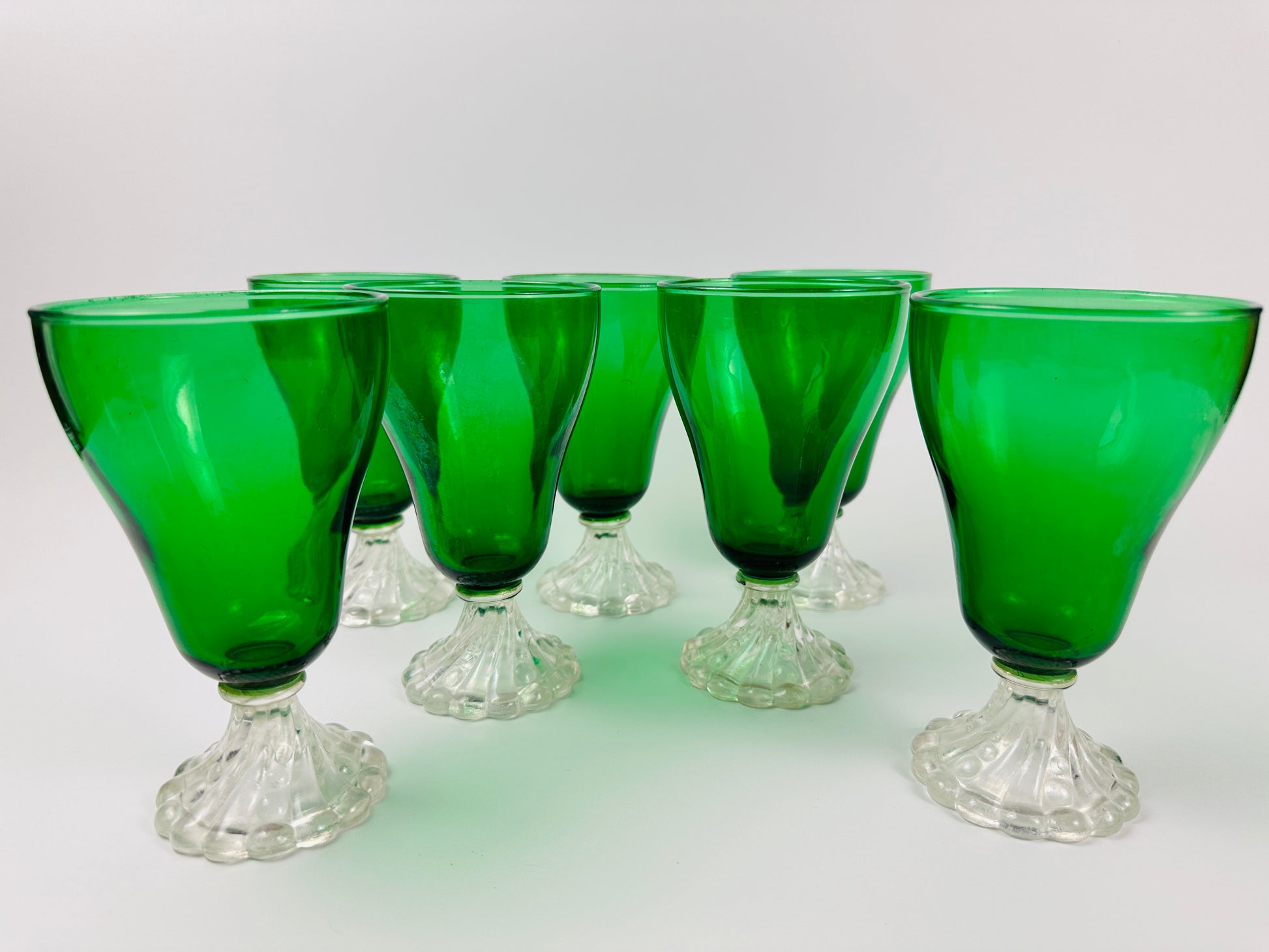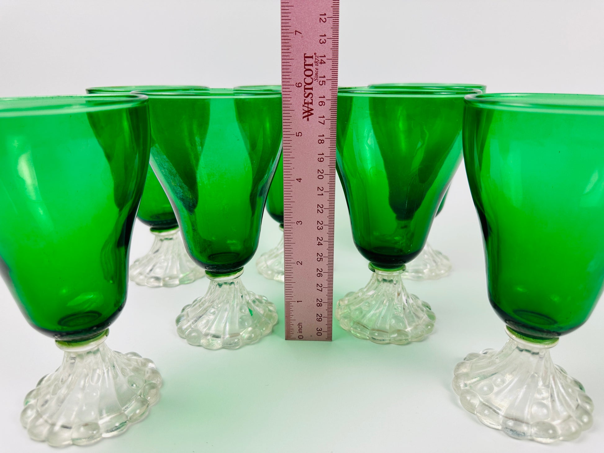 Green Clear Foot Milkshake or Water Glasses Set of Seven