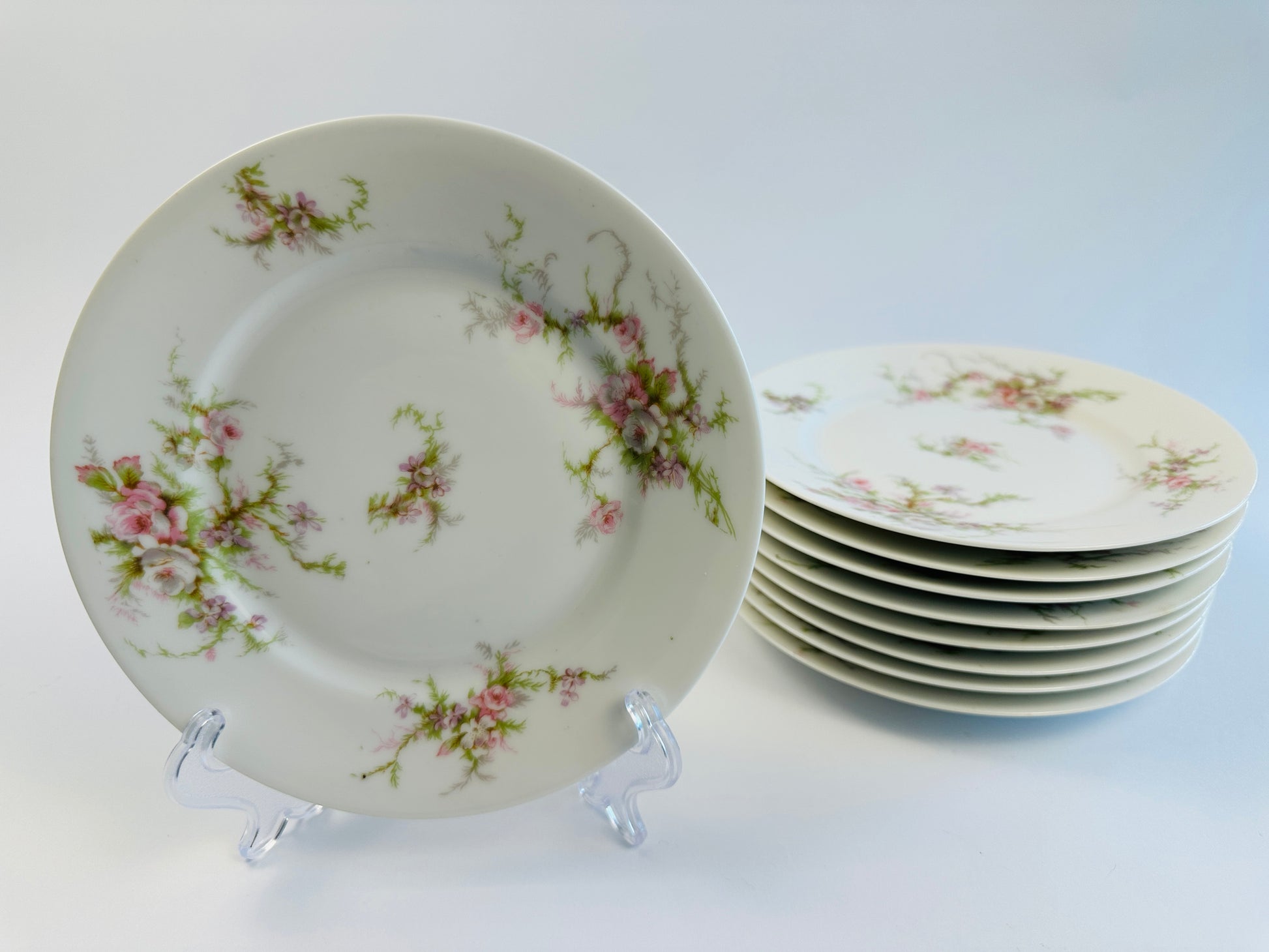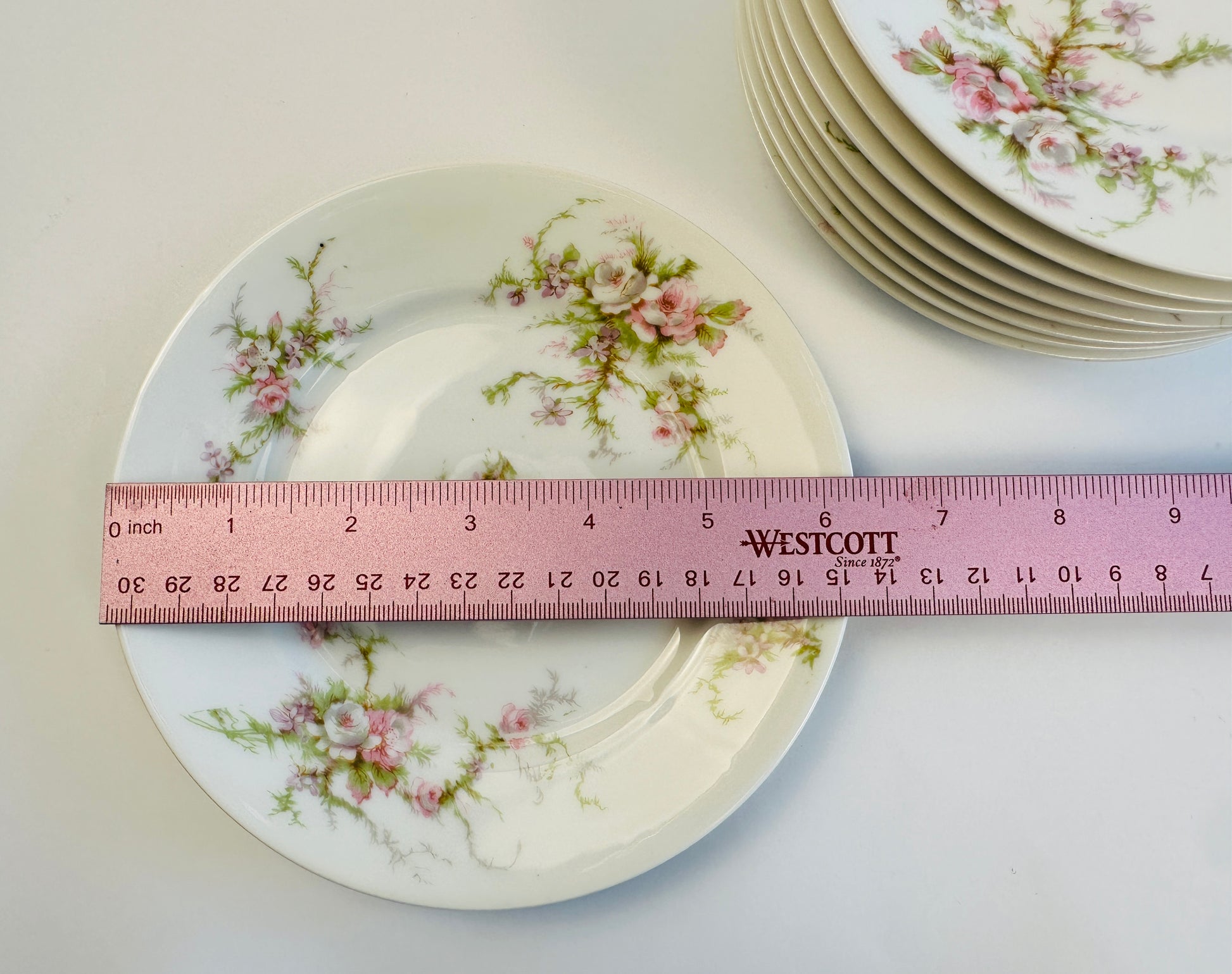 Pink roses and trailing leaves on a white background compliment Spring gatherings for friends and family or are perfect to recapture a refined vintage aesthetic. Item sold as a set only. Additional shapes and sizes of this collection are available on our website.