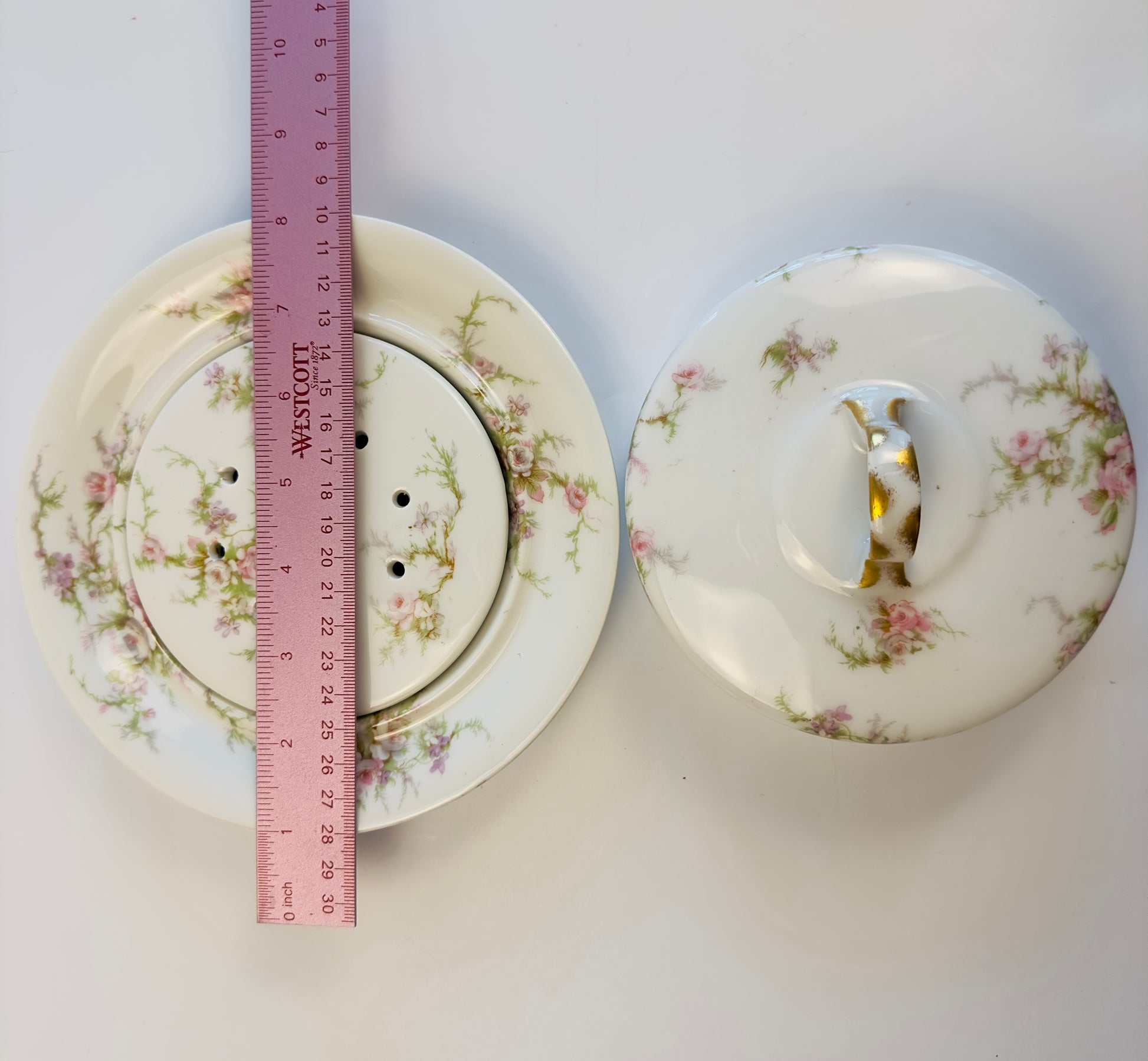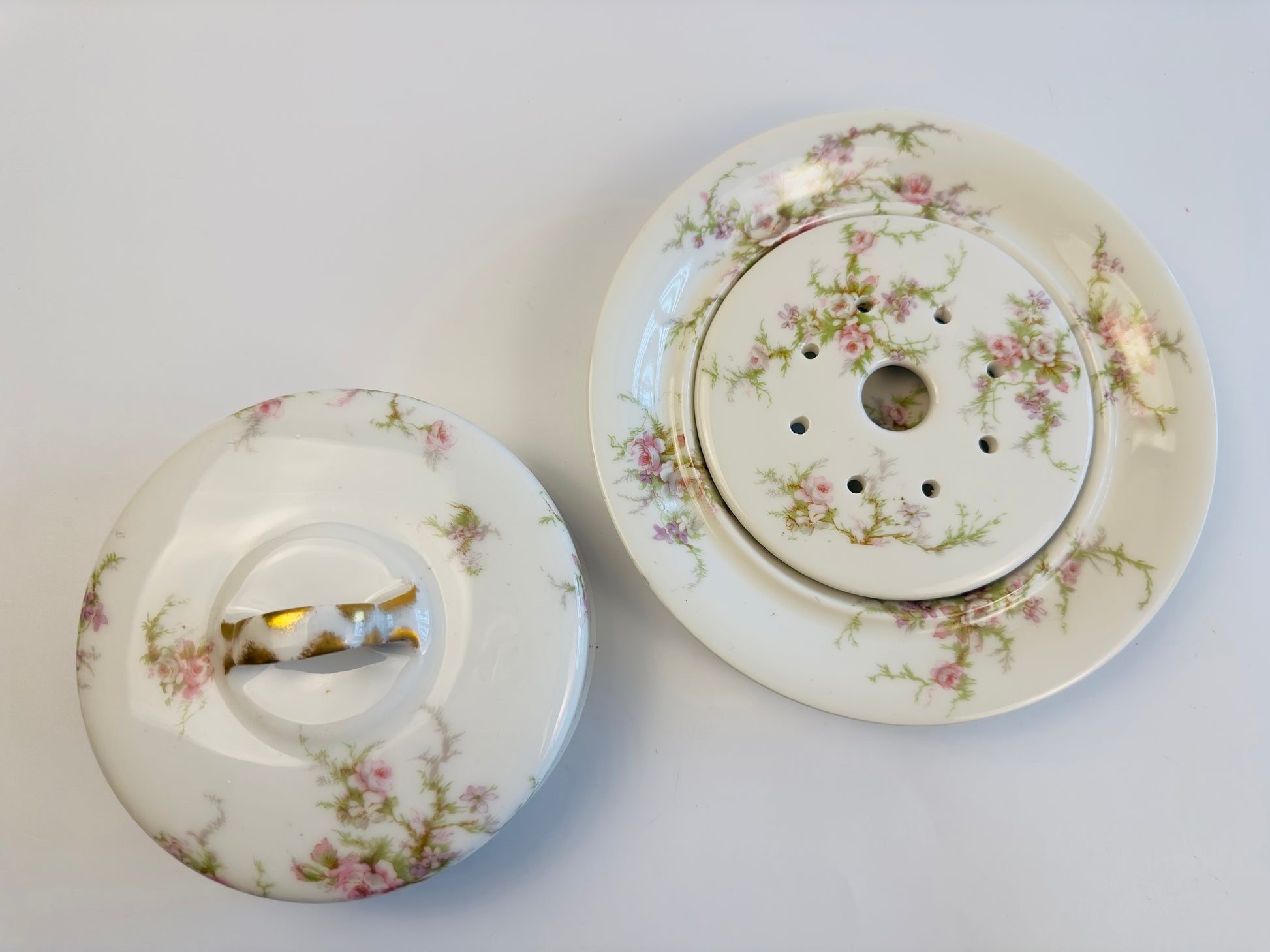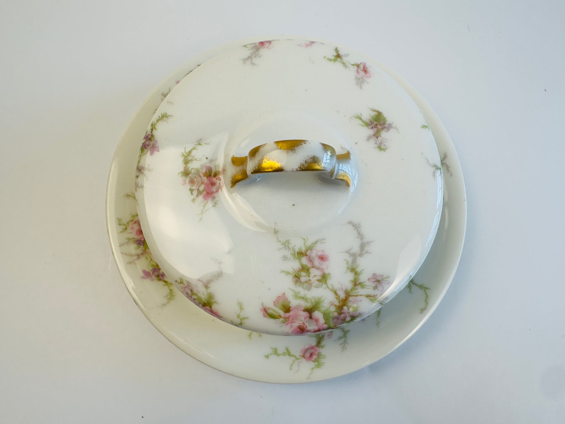 Haviland Pink Rose Covered Butter Dish With Ice Guard
