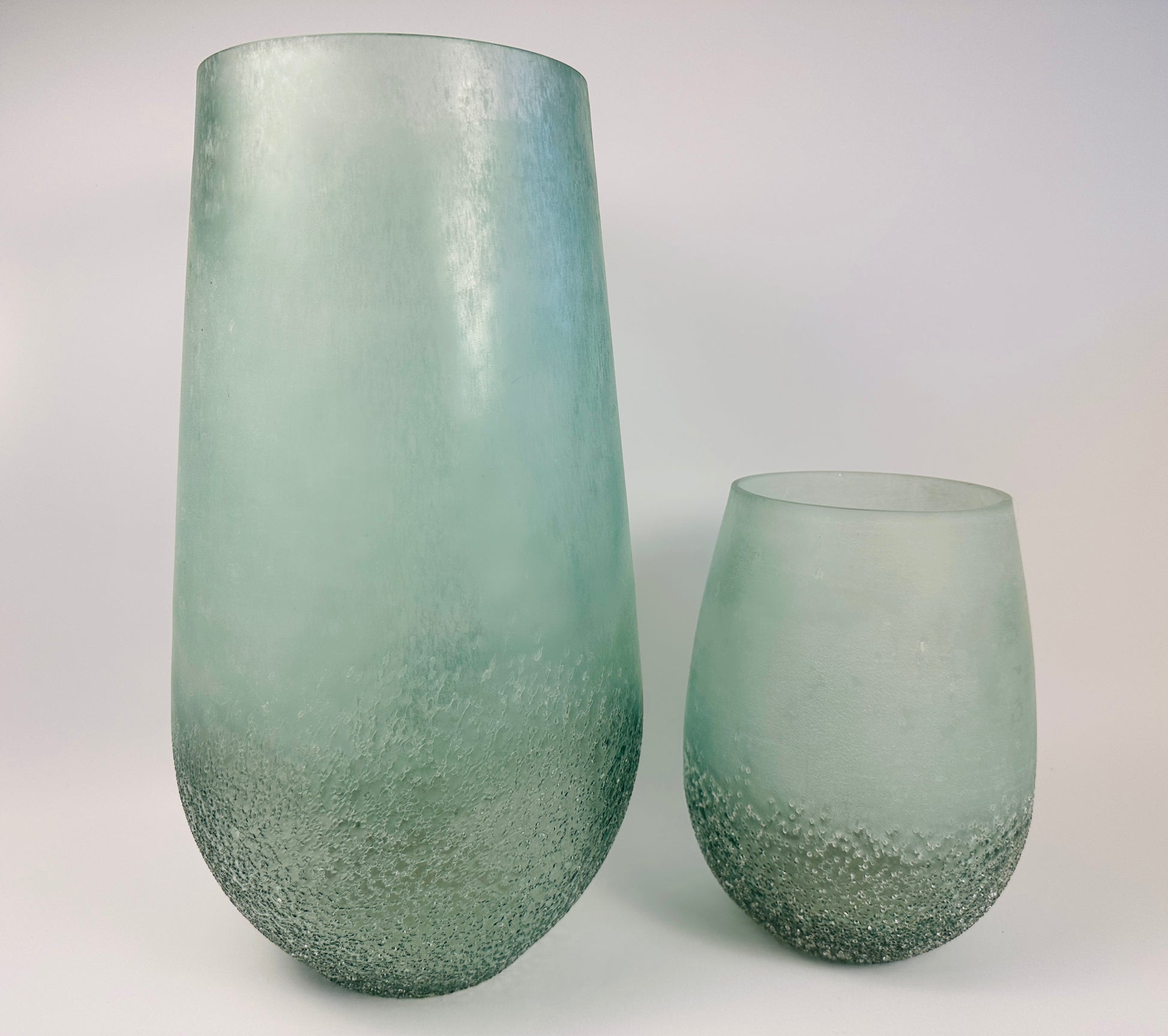 The icy-blue shade of this textured pair provides a hint-of-blue accent that reads almost as a neutral-but-better in most rooms. These versatile pieces can be filled with accent decor, used with candles, or paired as vases creating a stunning centerpiece or mantle focal point.