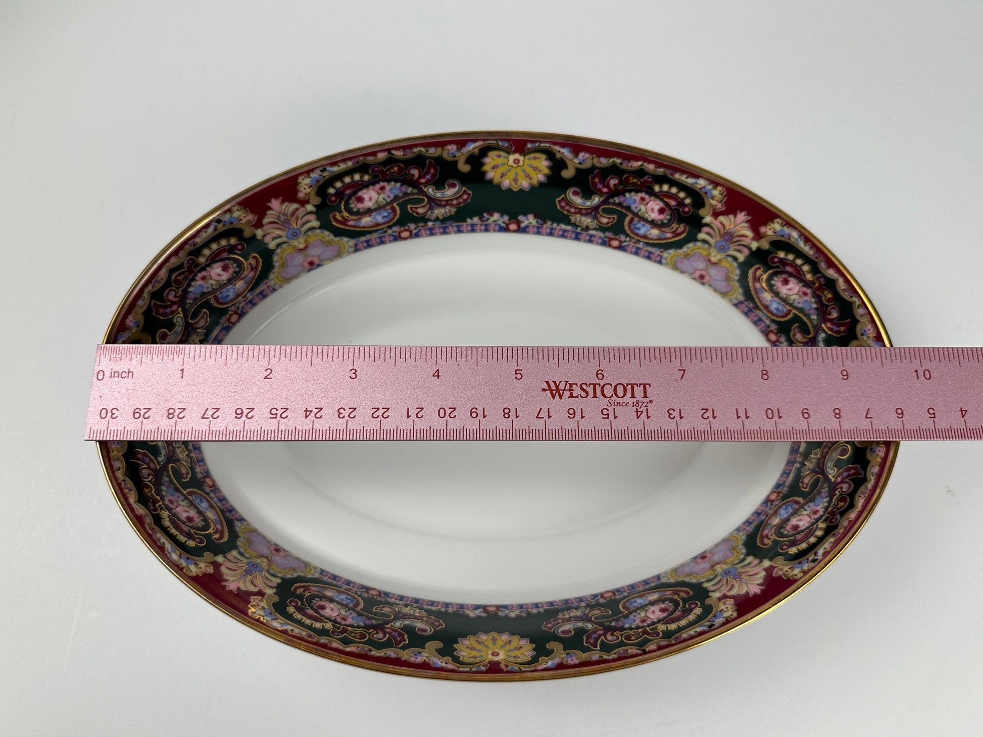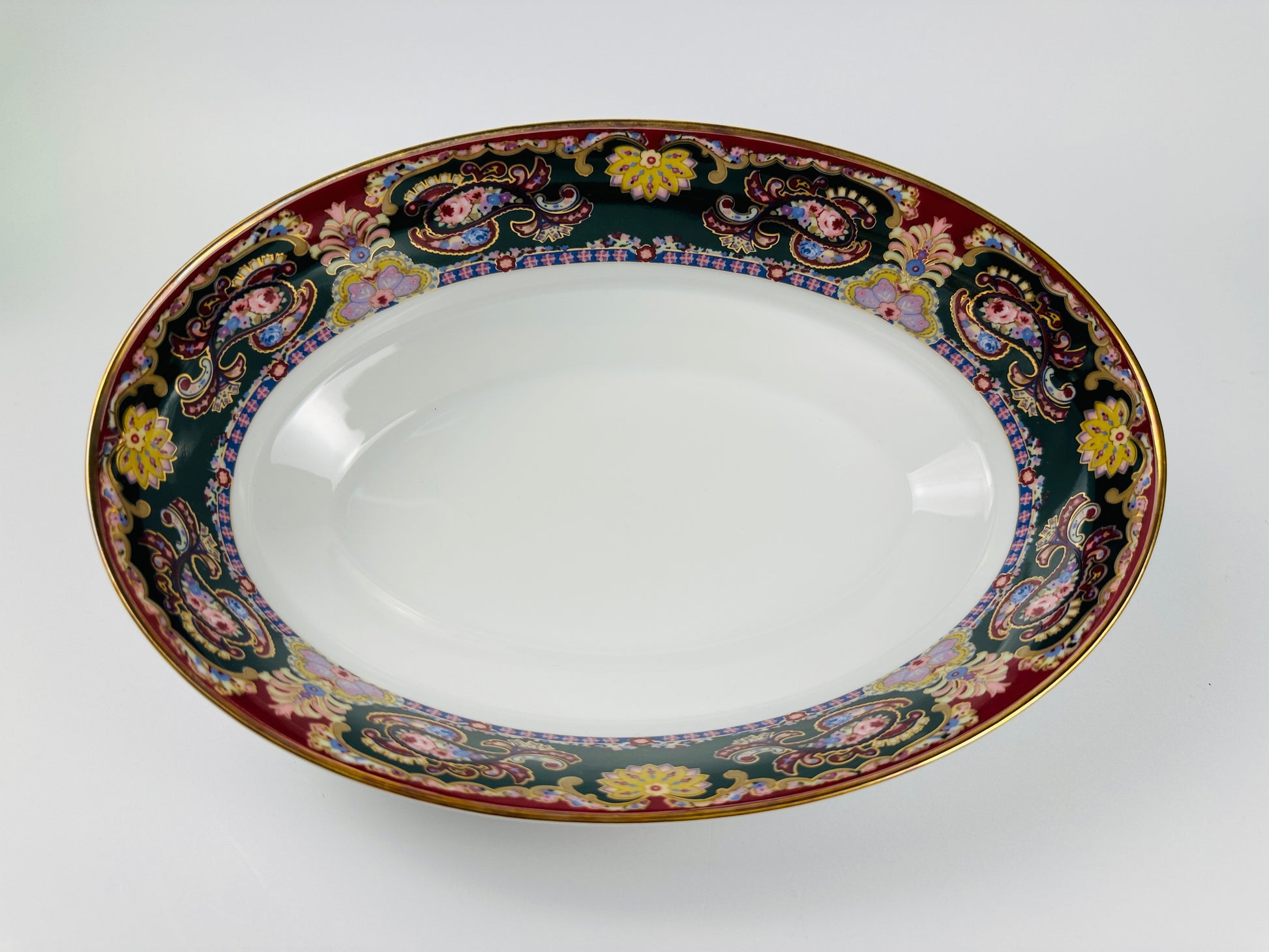A rim design of gold and jewel tones creates a statement with these china pieces from Muirfield. Only the best cooking will be worthy of this show-stealing dinnerware. Item sold as a set only. Additional shapes and sizes of this collection are available on our website.