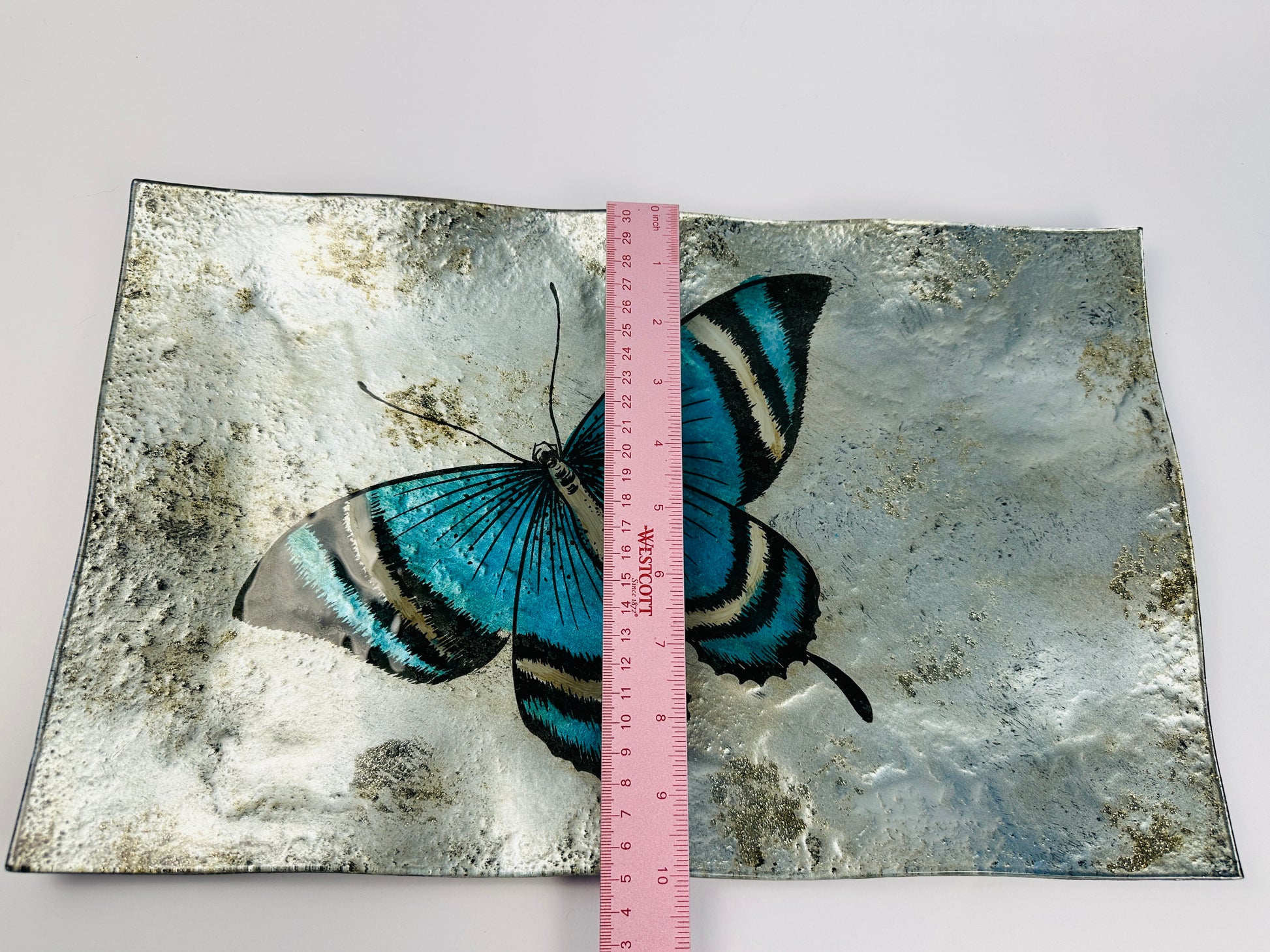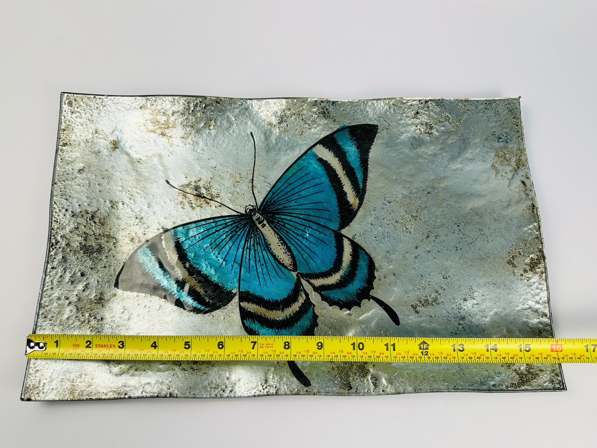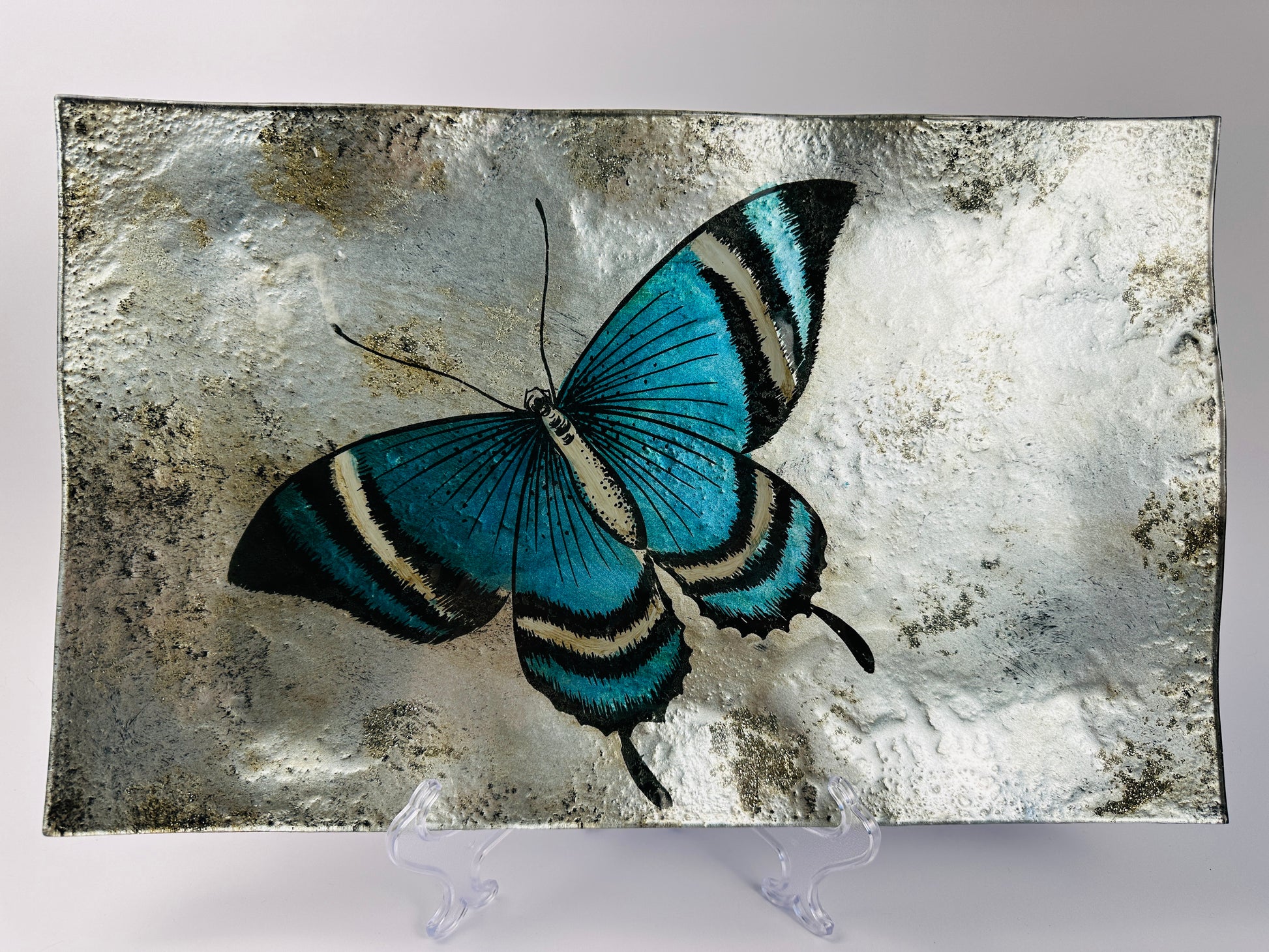 Reverse Painted Blue Butterfly Platter