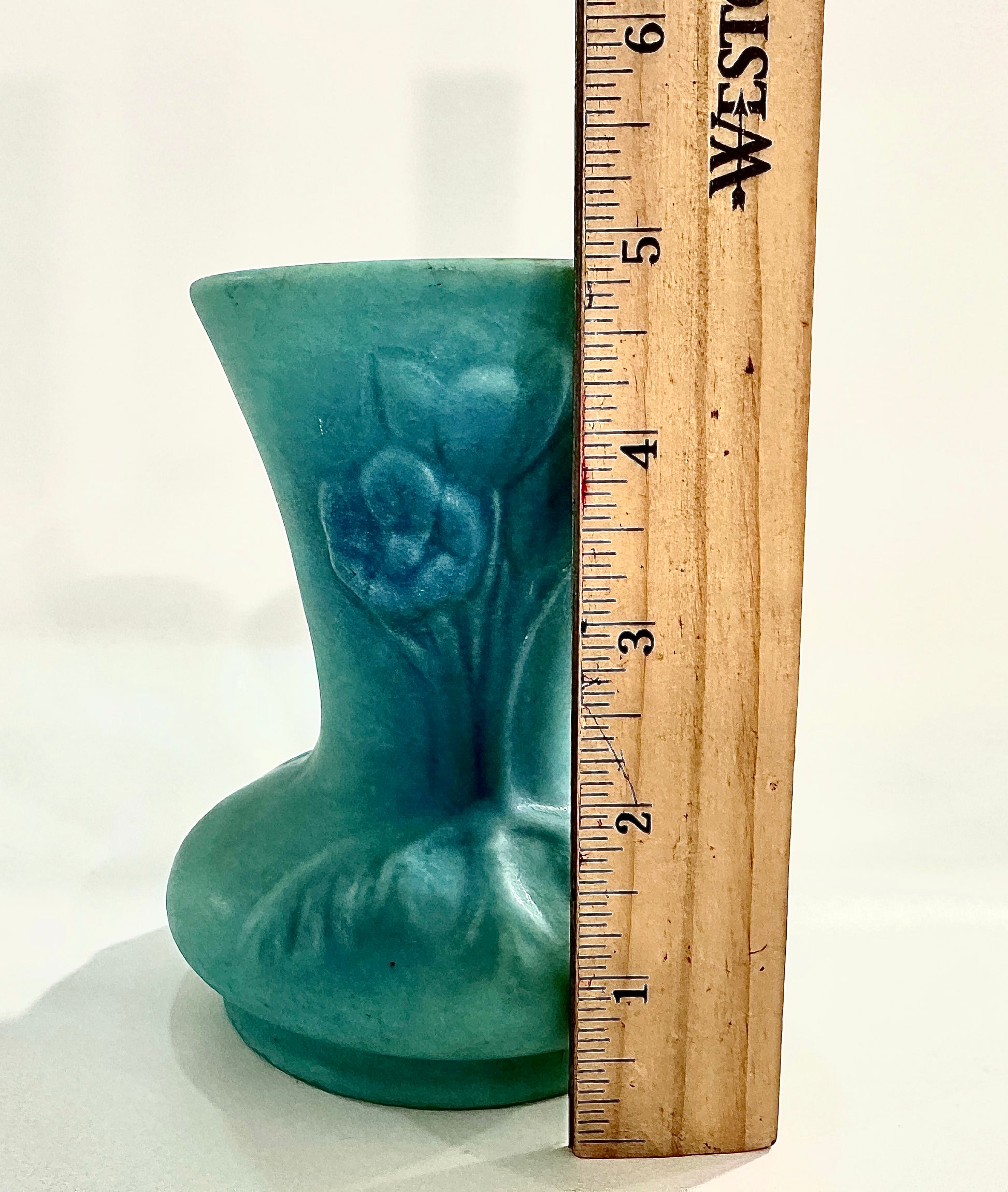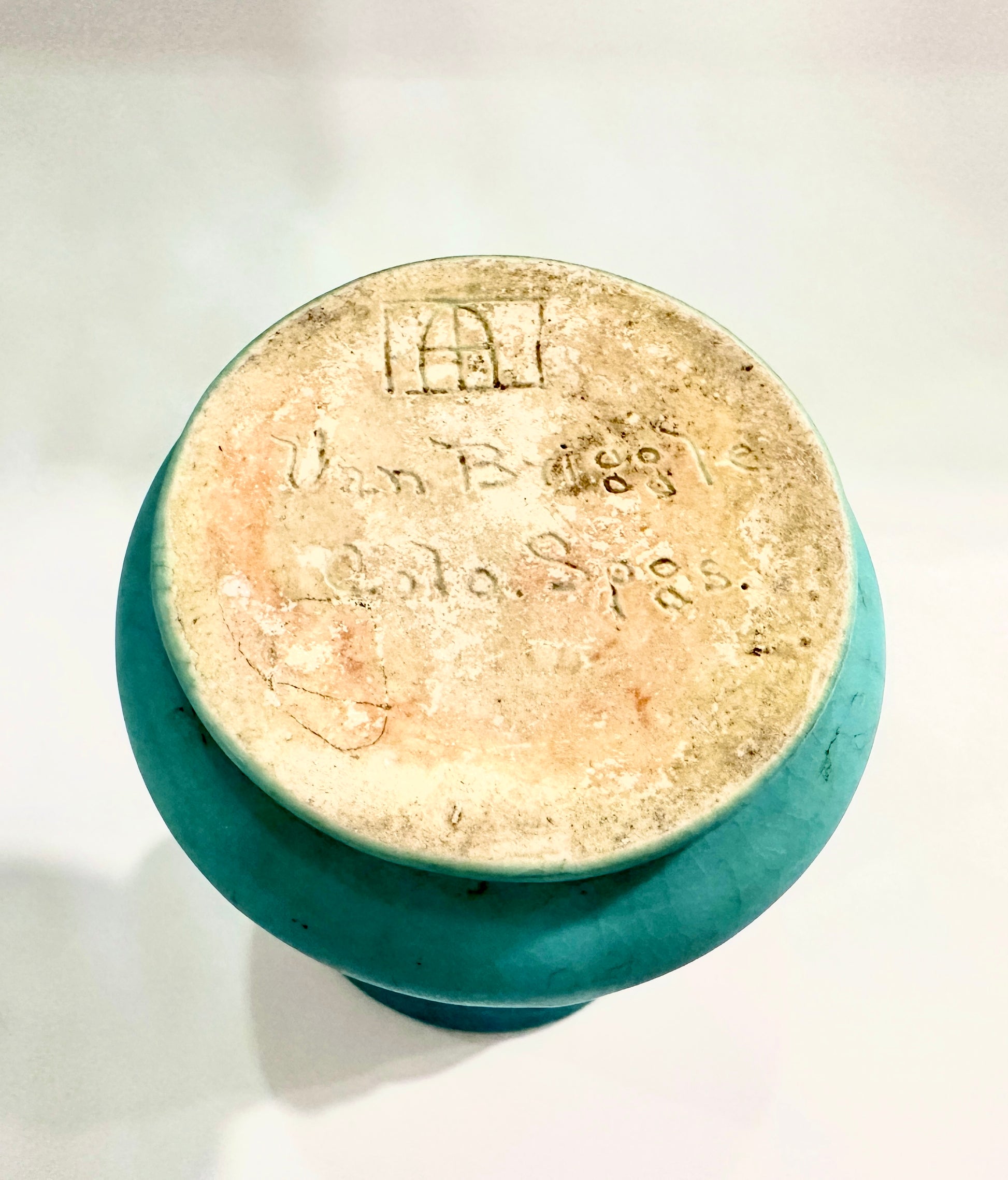 Van Briggle Pottery vase in blue/green tones - a classic for Van Briggle collectors, a great starter piece, or a beautifully colored vase for anyone. All BHDLV product offerings are previously owned. Condition is good condition consistent with previous use unless otherwise stated. Every sale from the BHDLV website generates a donation to a nonprofit animal rescue organization - thank you!