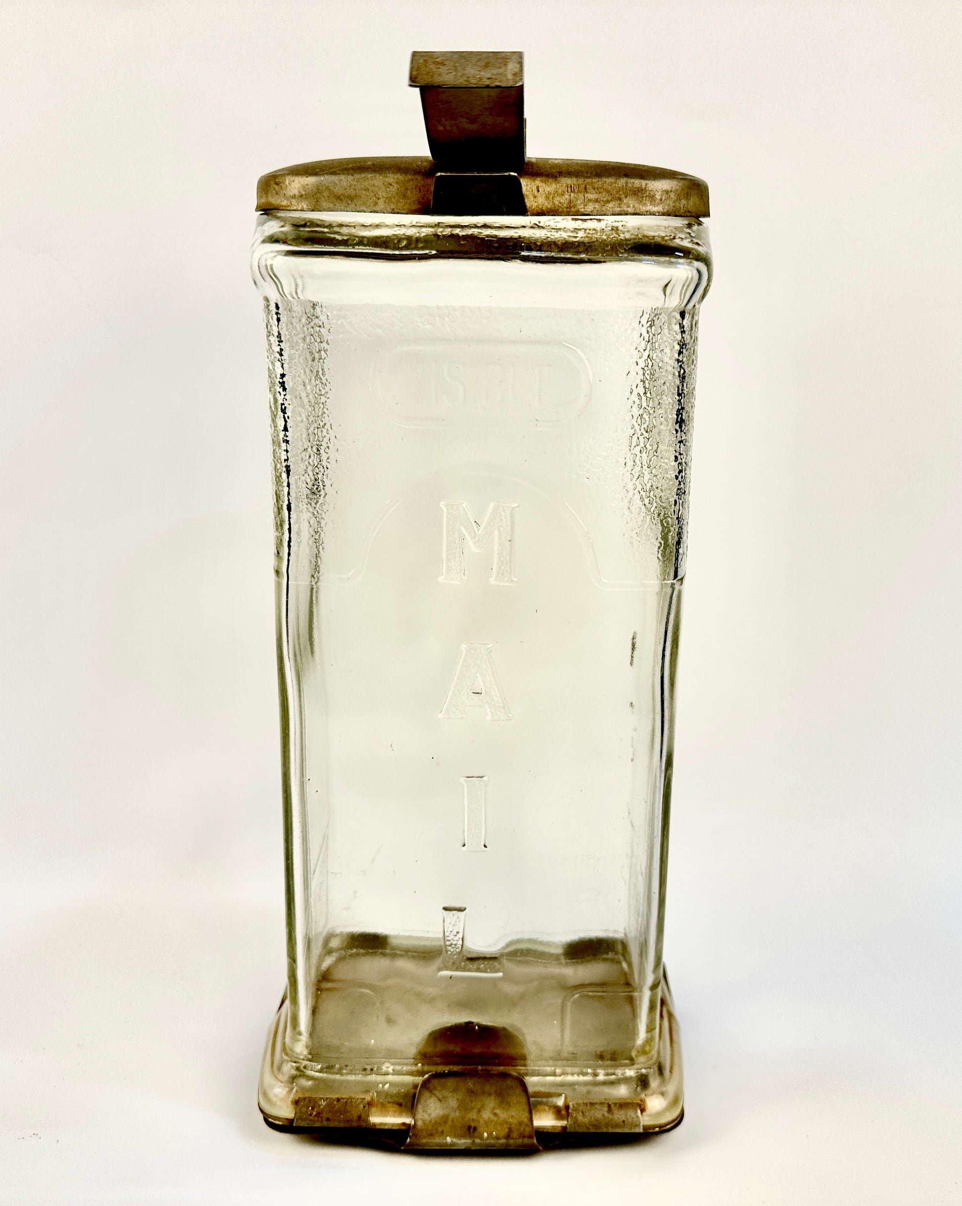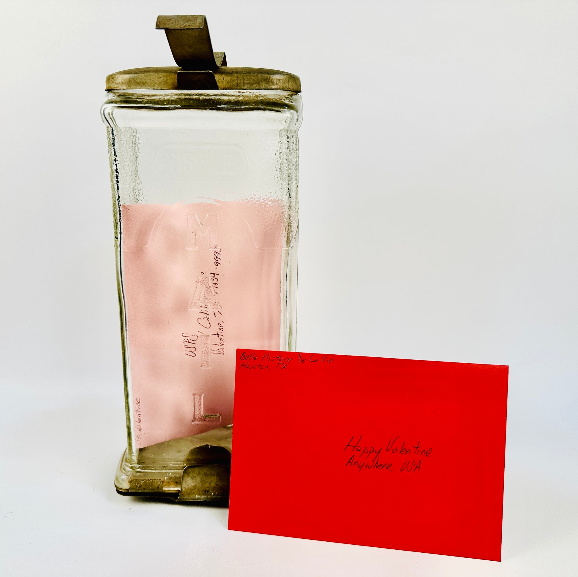 Signed, sealed and delivered. This vintage embossed glass mailbox is believed to be circa 1920’s, but this has not been expert verified. A great way to ensure your vintage-collector Valentine gets their card right on time.