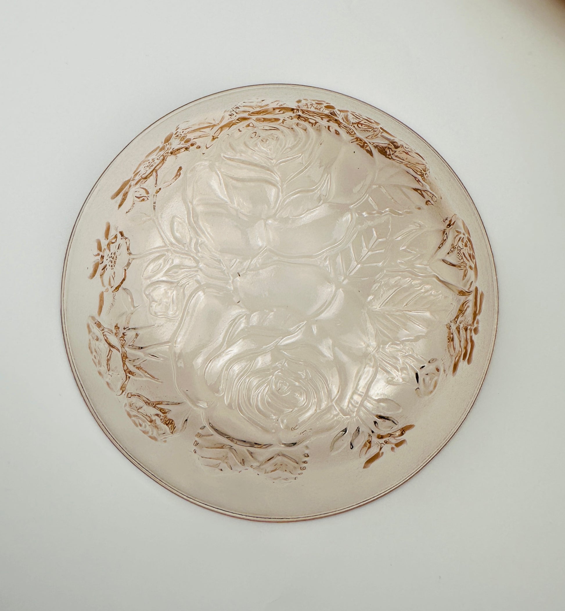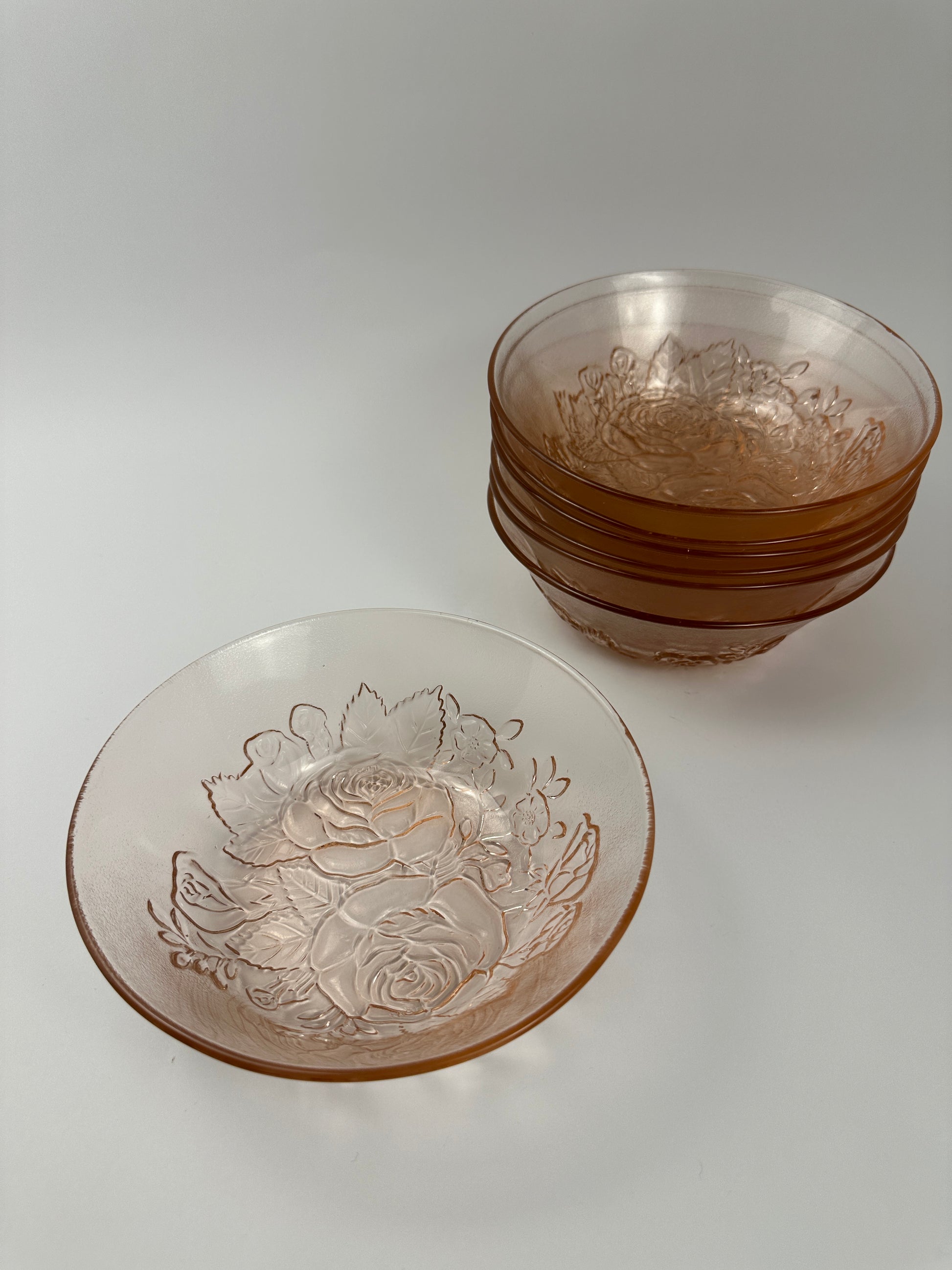 Vintage Pink Rose Pressed Glass Bowls Set of Seven