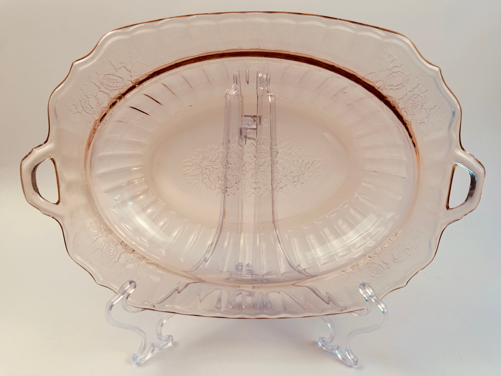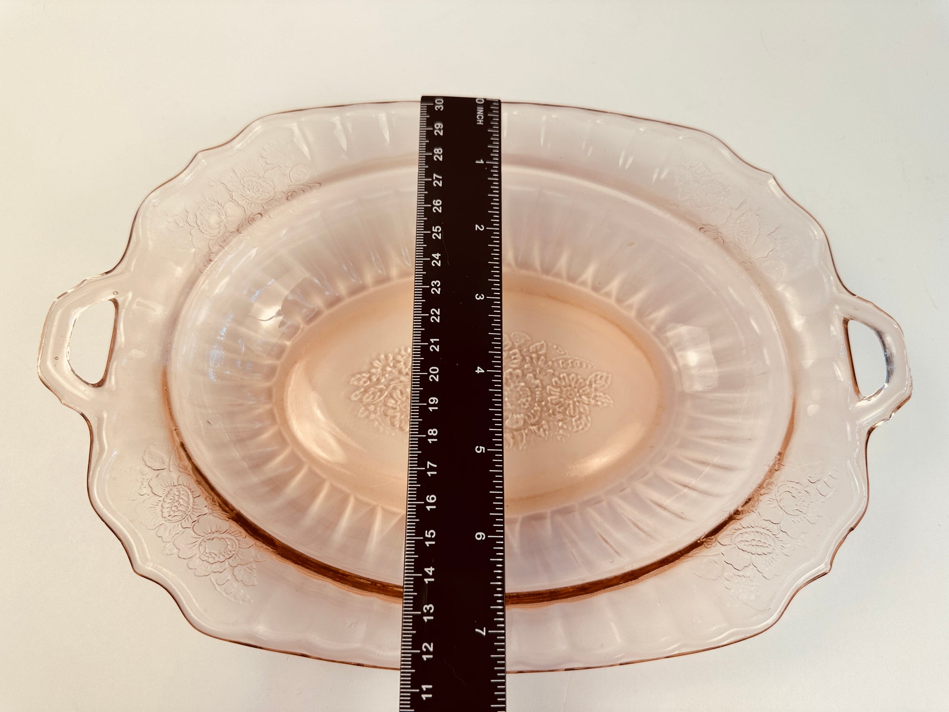 Vintage Pink Wide Rim Pressed Glass Serving Bowl