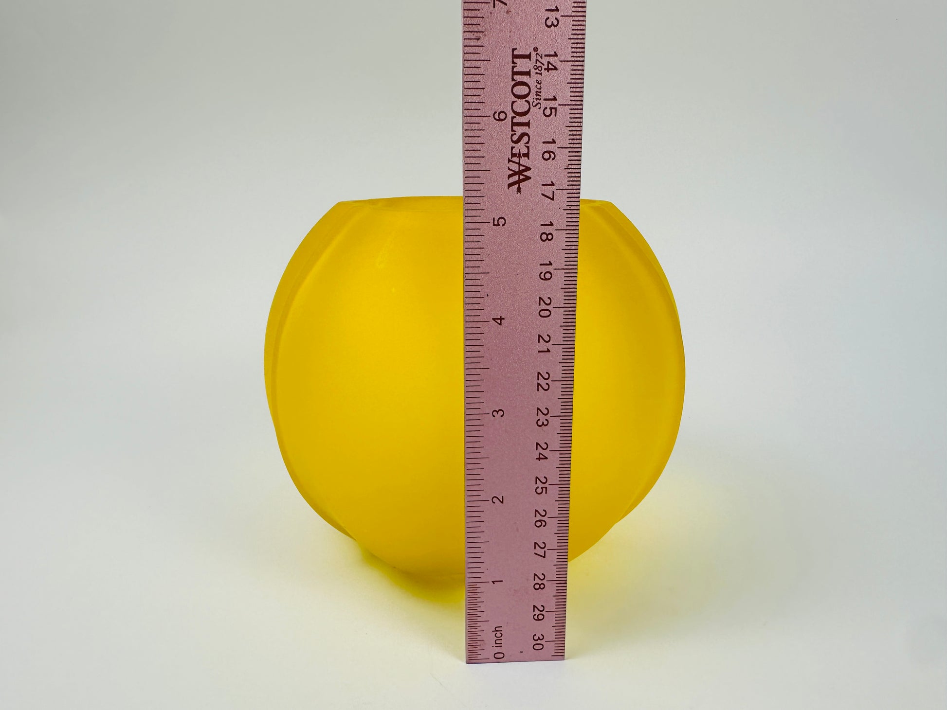 This yellow rose-bowl vase would be extra sunny filled with yellow roses or place a votive or tealight at the bottom for a glowing tabletop accent. As an alternative to expensive florist flowers in mass-produced, throw-away vases, select a few favorite blooms for a beautiful vase as a memorable and reusable gift.